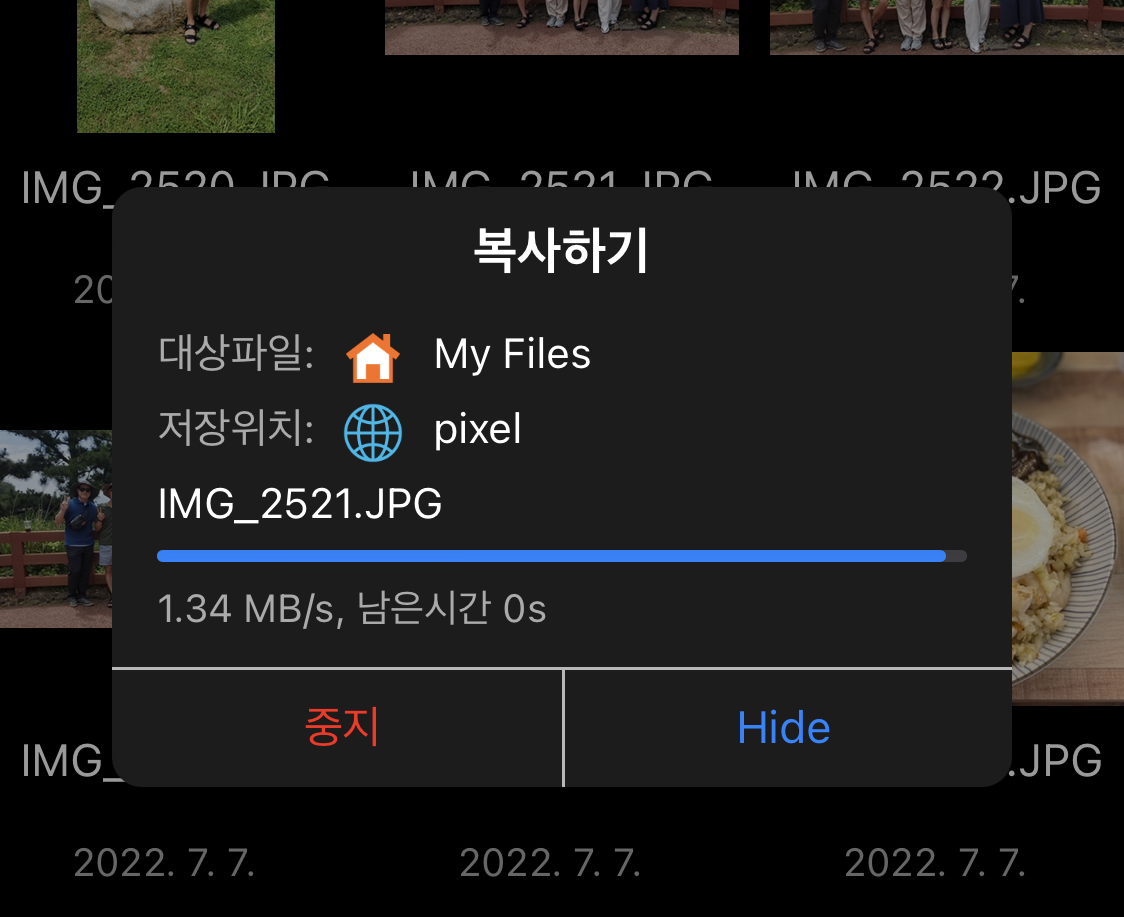 경로지정이 가능하여 파일을 전송 시 바로 픽셀의 사진 폴더로 들어갑니다.