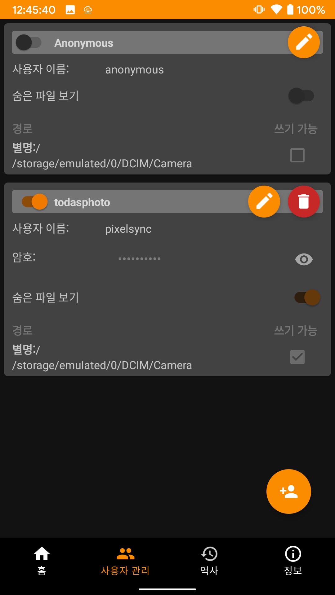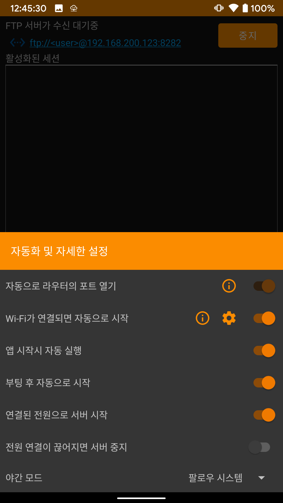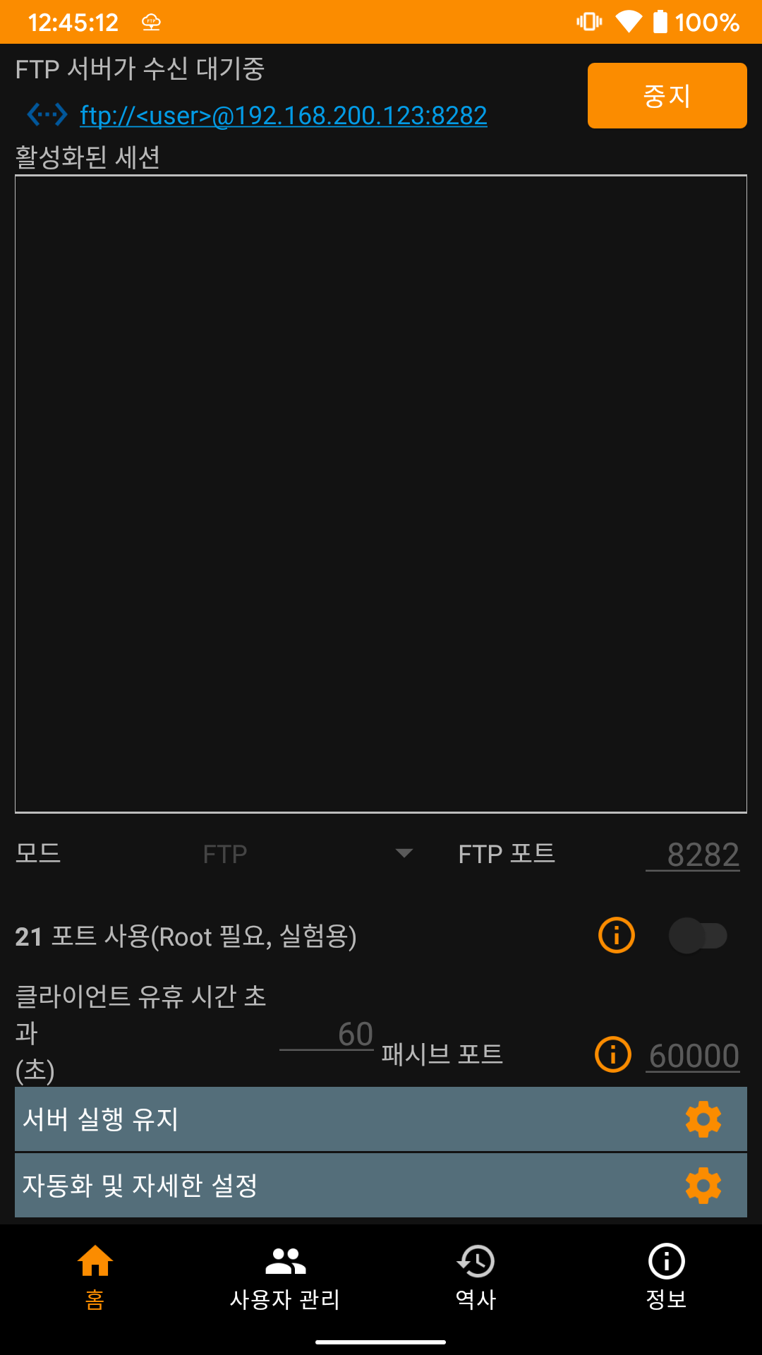 안드로이드 기기에서는 위의 FTP Server를 설치하여 구동하였습니다.