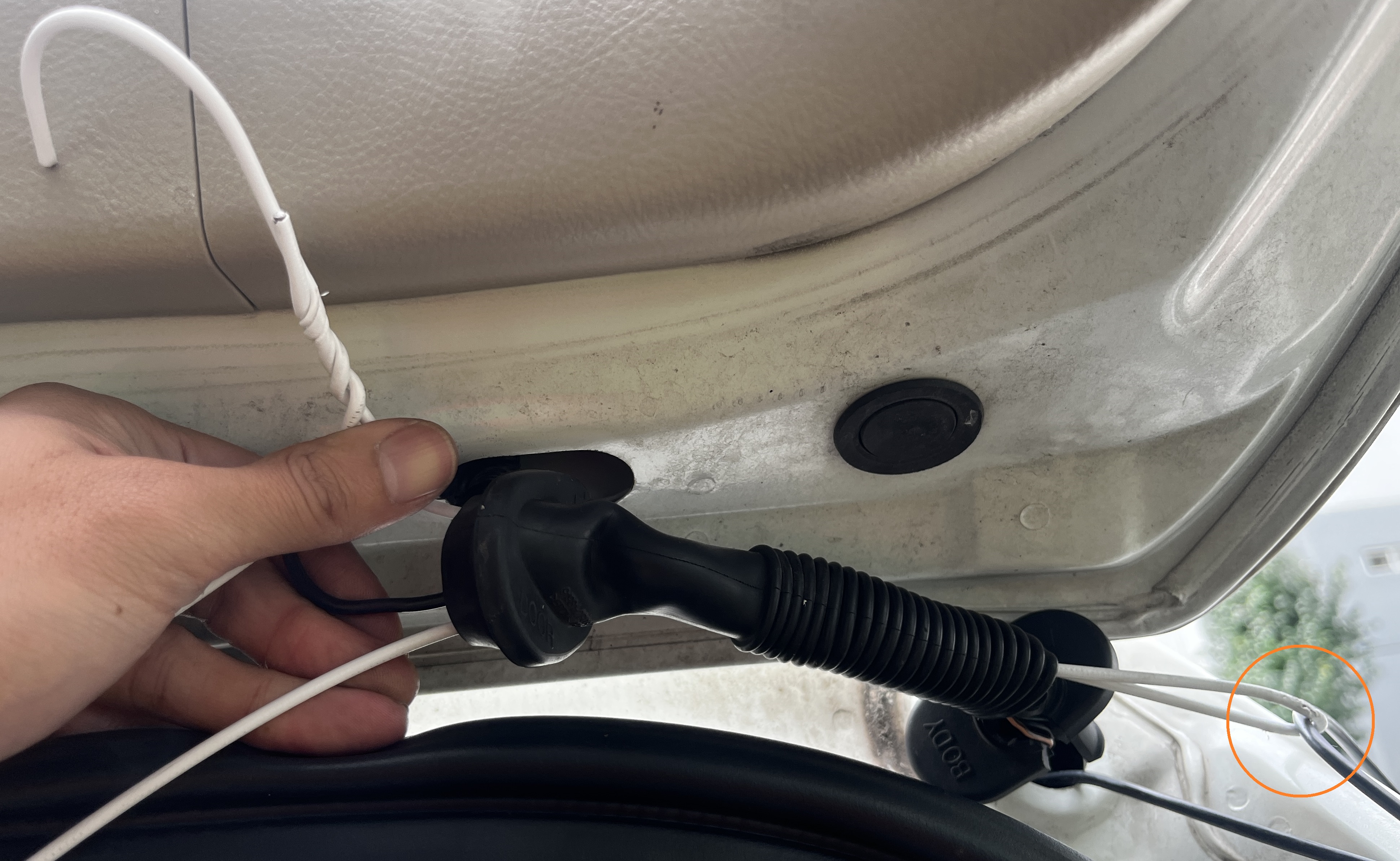 SUV나 경차의 경우 후면 5 Door 쪽에 저렇게 주름관으로 배선이 지나가는 경우가 많은데, 작업하는 배선을 저길 통해주어야 배선 정리가 깔끔해집니다.