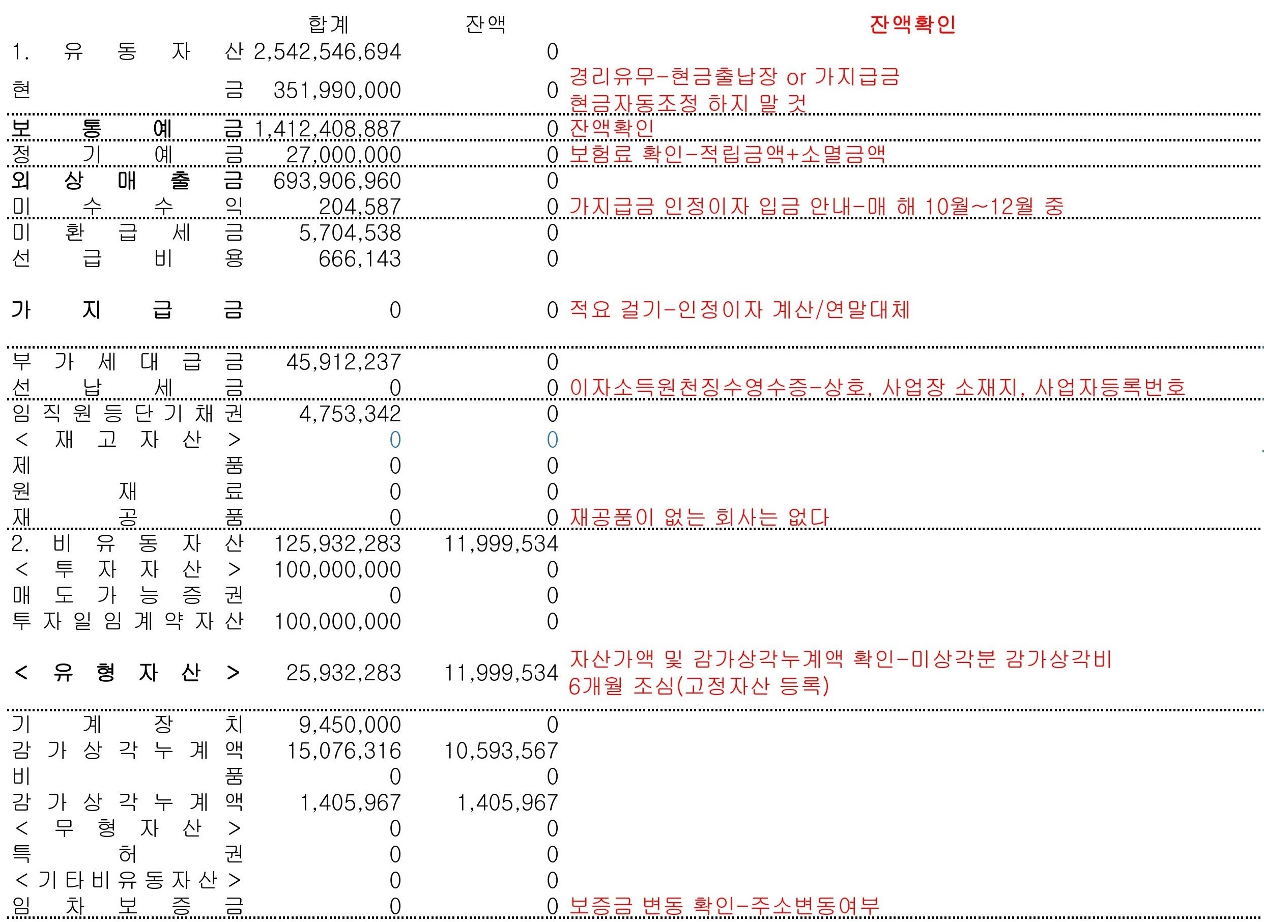 그렇기에 전술한 바와 같이 법인사업자의 경우 개인사업자와는 달리 예금잔액이나 외상대등 자산부채의 잔액을 맞추는 것이 제무재표 작성 시 아주 중요하게 됩니다.