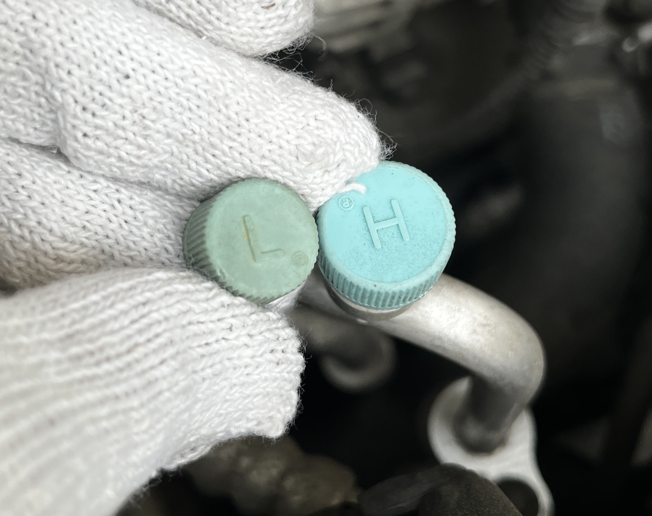위 사진이 에어컨 냉매 배관의 뚜껑인데 L이라 쓰여있는 것이 저압배관이며, H는 고압배관입니다.