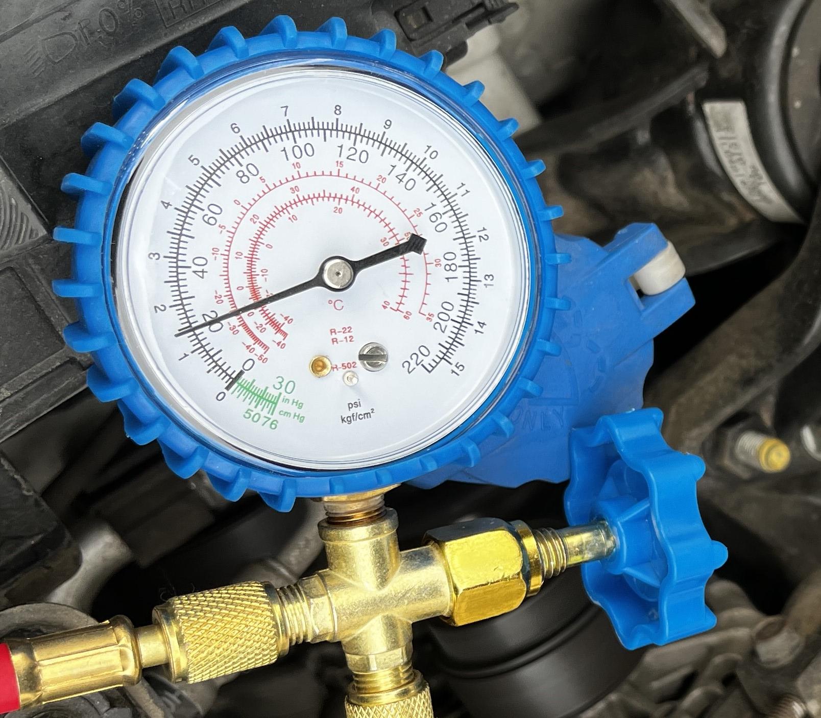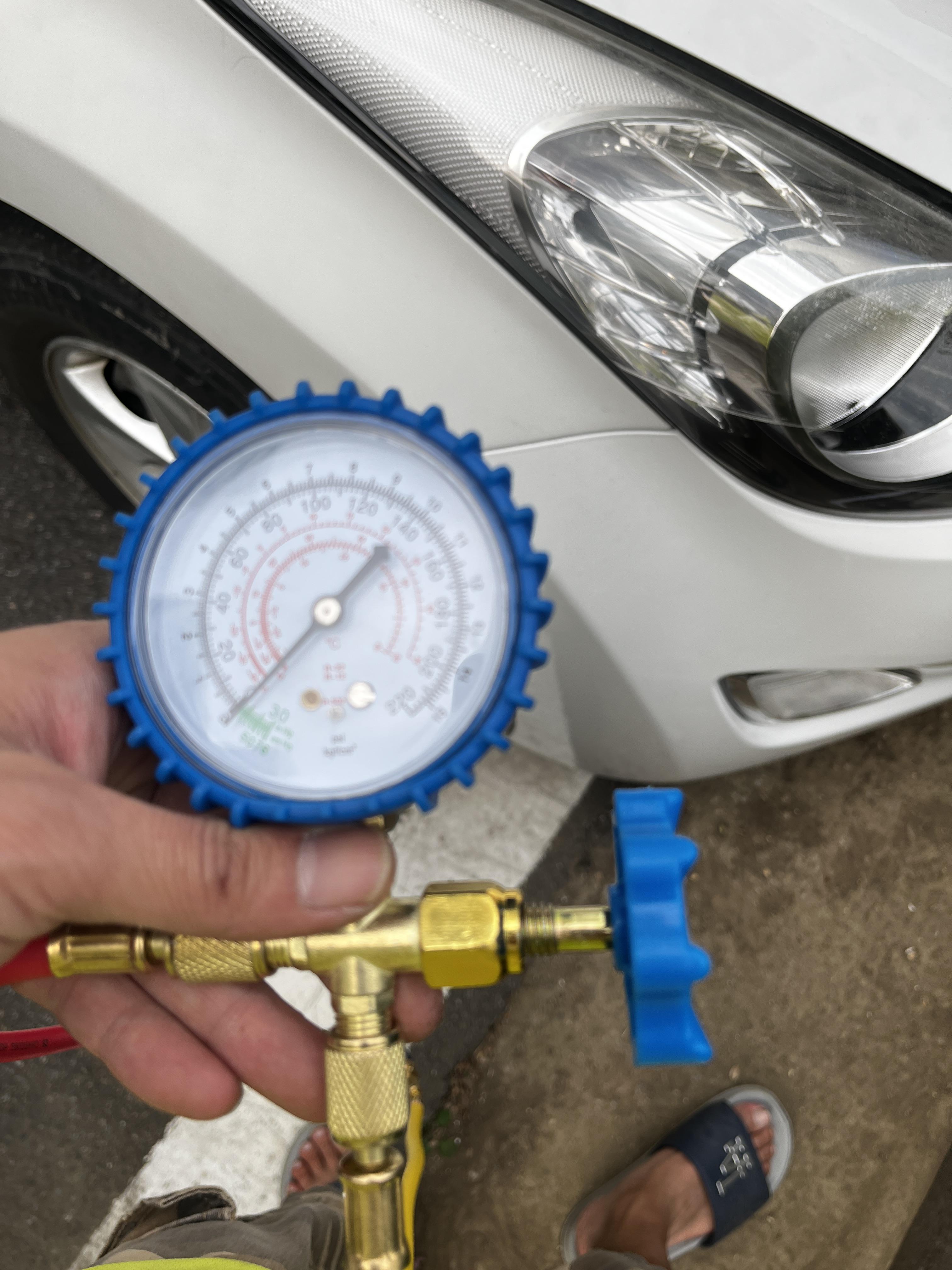 (사실 정확하게는 저압배관의 압력만을 보는 것이 아닌, 고압배관과의 압력차를 확인하는 것이 맞다는 글을 보았습니다만.) 역시 가스가 부족하다 판단되어 주입을 시작하였습니다.