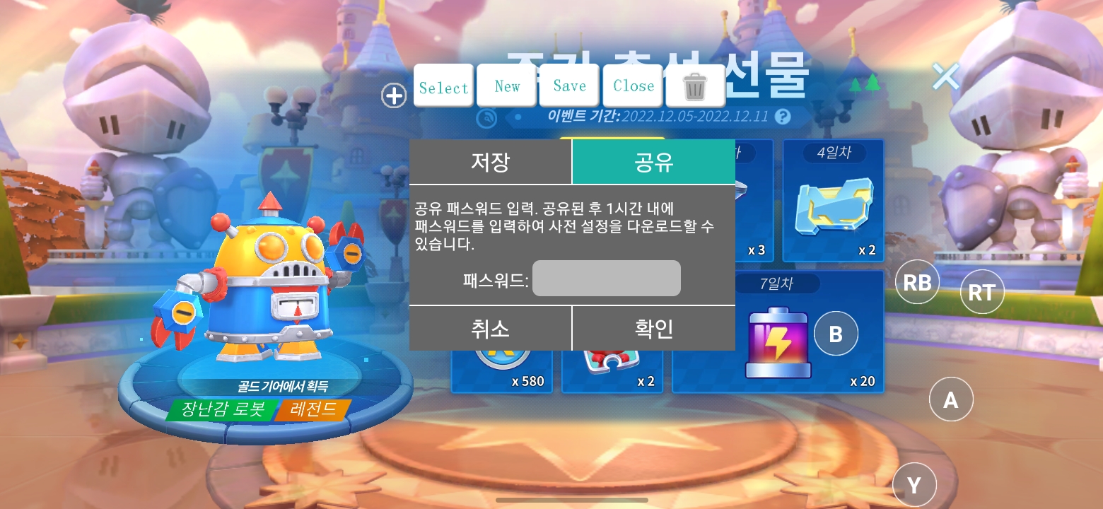 저는 이 게임패드를 자녀들 것까지 총 3개를 구매하였는데, 이런 경우 'Save' 옵션 중 '공유' 탭을 이용하여 다른 기기로 제 설정을 복사할 수도 있습니다.