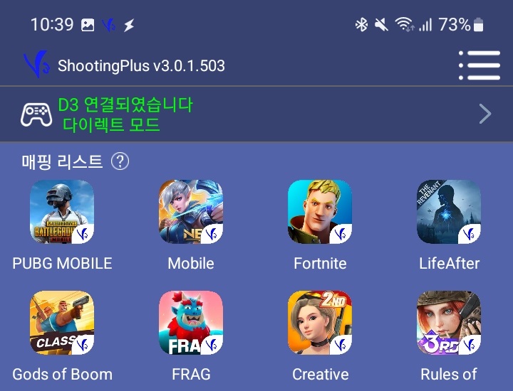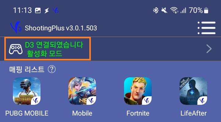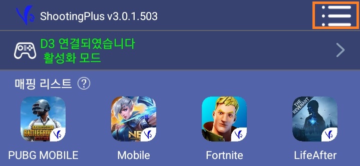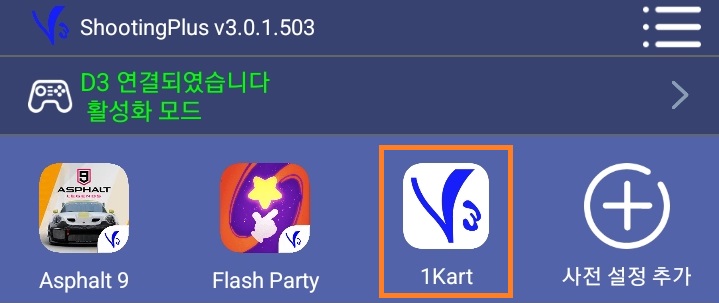 '동시에 APP에 저장'을 선택하면 세 번째 사진처럼 슈팅 플러스 앱에 매핑 설정이 저장되어 나중에 다시 불러와 사용이 가능합니다.