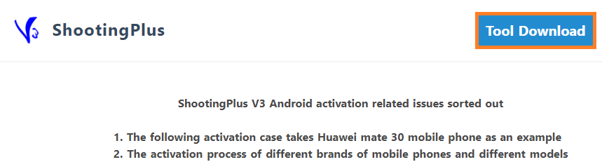ShootingPlus V3 Android activation related issues sorted out 1. The following activation case takes Huawei mate 30 mobile phone as an example 2. The activation process of different brands of mobile phones and different models of mobile phones is the same,