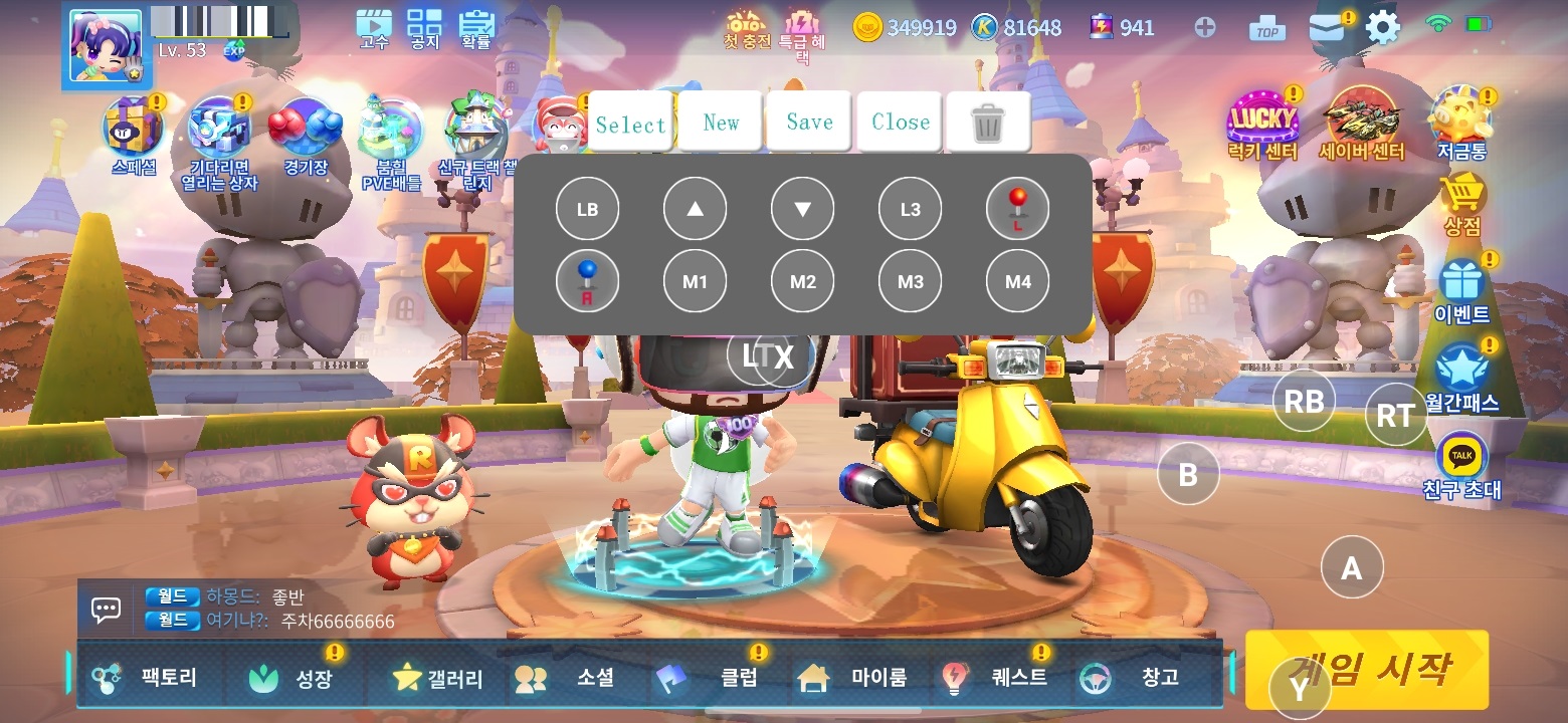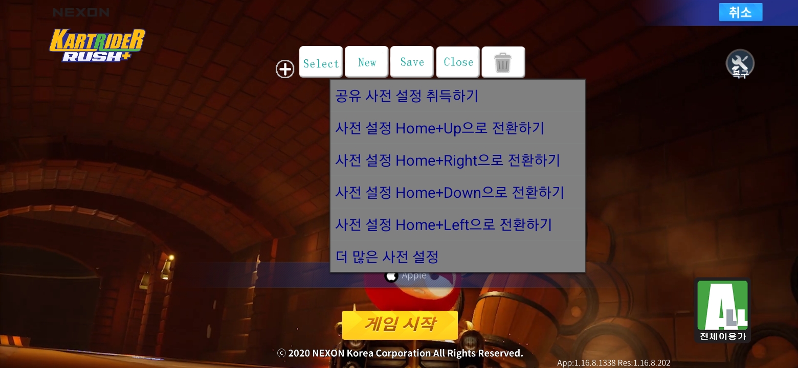 게임 화면에서 매핑을 설정하는 단축키는 컨트롤러 본체의 'STA' 버튼입니다.