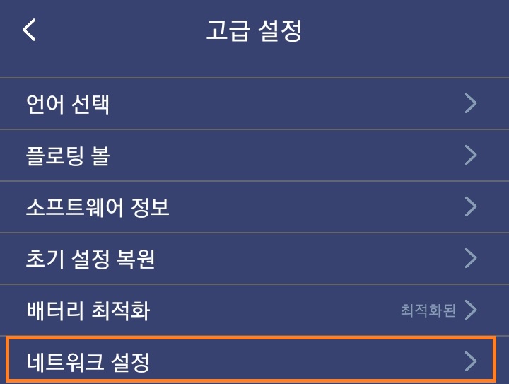 왼쪽처럼 제대로 연결이 안 되는 경우 Shooting Plus 앱을 실행한 후, 우상단의 메뉴 버튼으로 진입하여 '고급 설정' > '네트워크 설정'으로 진입하여 3개의 라인 중 다른 것으로 선택한 후 '확인'을 눌러 저장하고 앱을 재구동하면 셋 중 하나는 되는 것이 있습니다.
