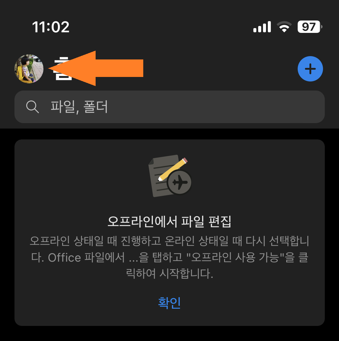 iOS 기기에서 원드라이브를 실행한 후 왼쪽의 프로필 아이콘을 누르면,