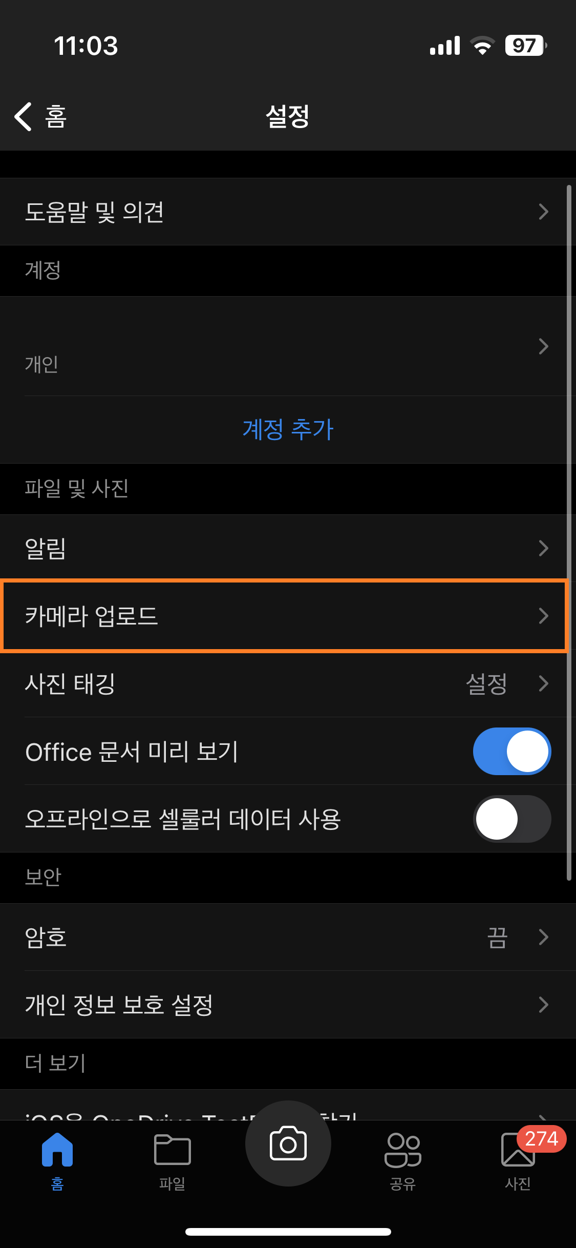 앱스토어에서 원드라이브를 기기에 설치합니다.