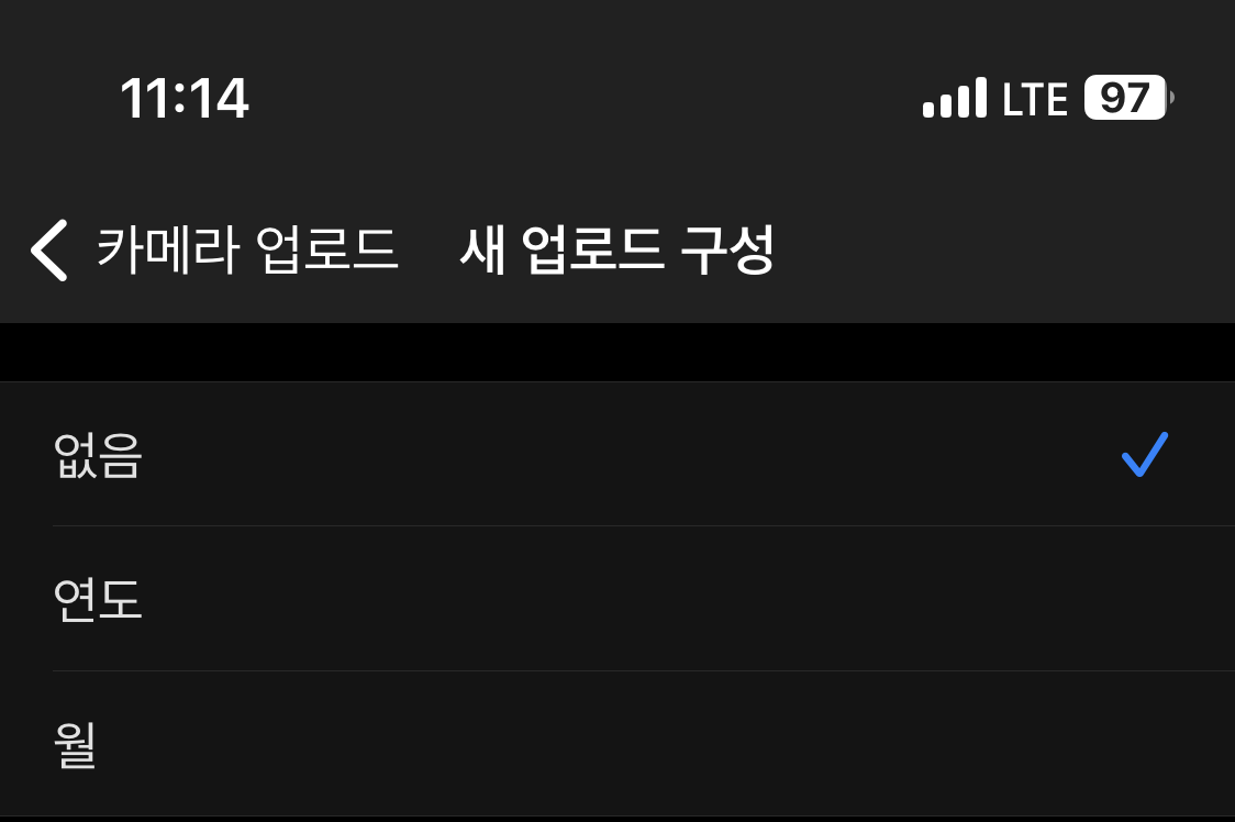 새 업로드 구성에서 업로드시 원드라이브 내에 폴더를 '월별'이나 '연도별'로 생성할지, 생성하지 않을지를 선택할 수 있습니다.