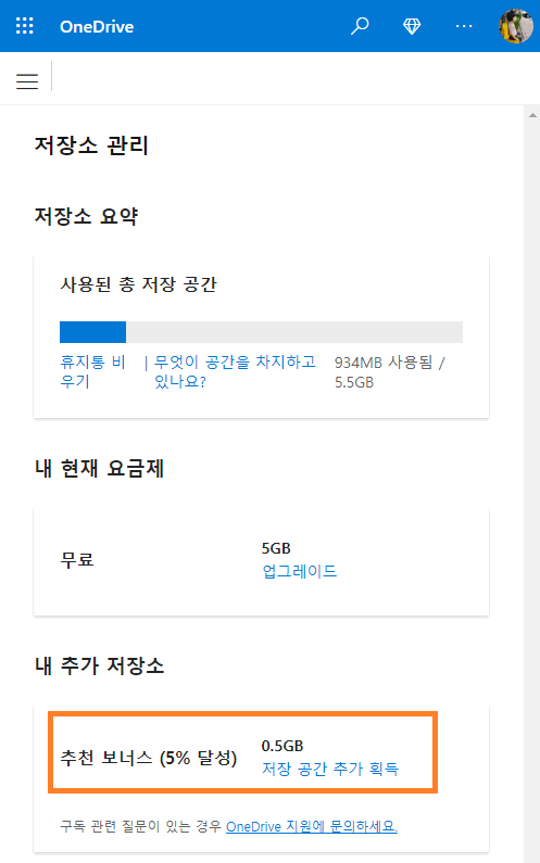 해당 바로가기로 마이크로소프트 계정을 생성하면 회당 0.5GB씩 추가 계정을 총 5GB까지 받아 무료로 사용 가능한 용량은 10GB까지 늘어납니다.