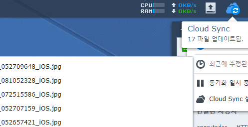 설정을 하고나면 가운데 사진처럼 업로드가 진행되며, 홈화면에서는 우측 사진처럼 업로드 중인 잔여 파일 개수가 배지로 나옵니다.