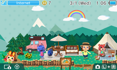해외판으로 국적을 변경하면 테마 적용도 가능하여 위 사진처럼 홈화면에 동물의 숲 테마를 입혀주었습니다.