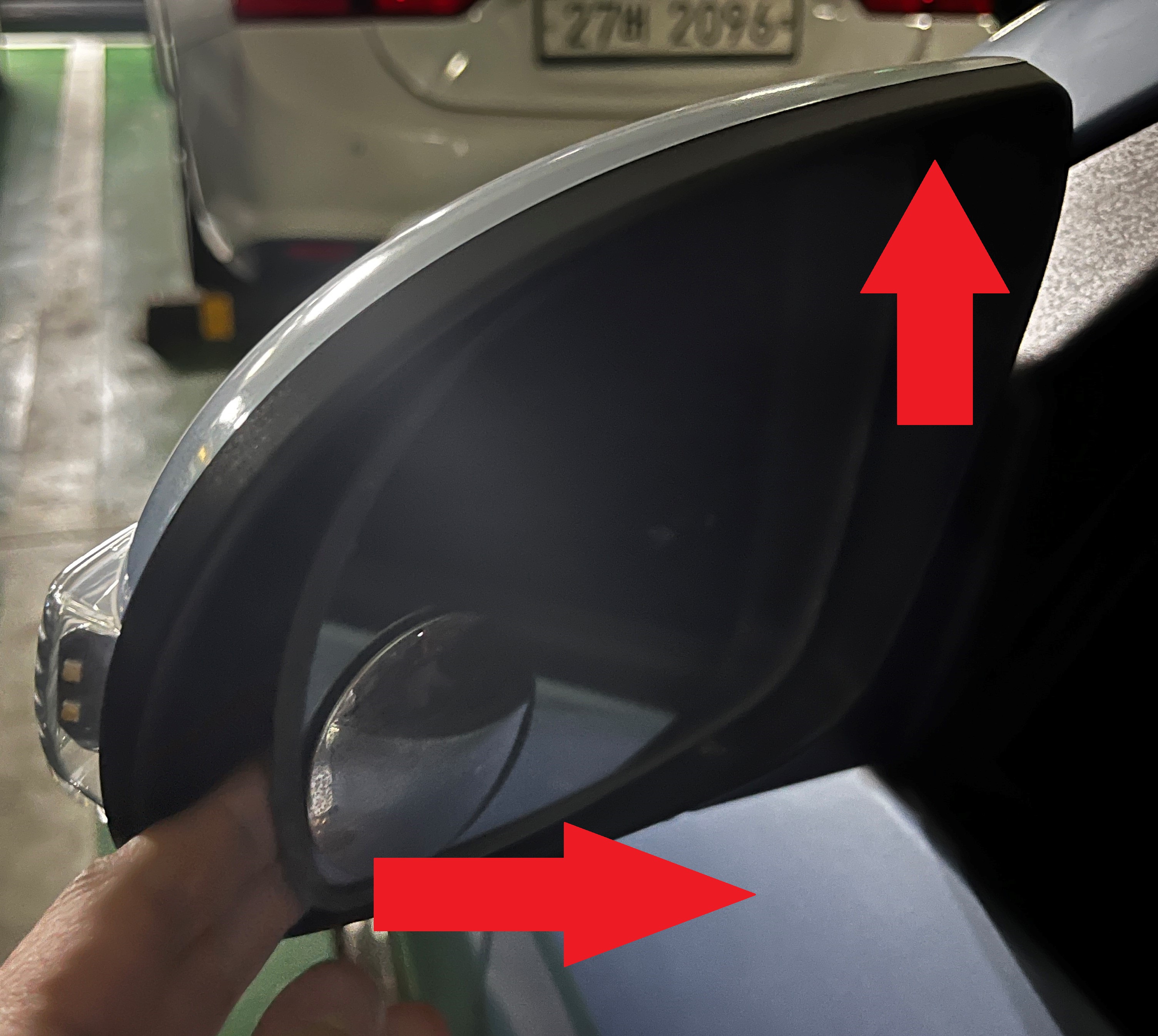 체결 후에 사이드미러의 모서리 부분을 돌려가며 꾹꾹 눌러보면 쉽게 확인할 수 있습니다.