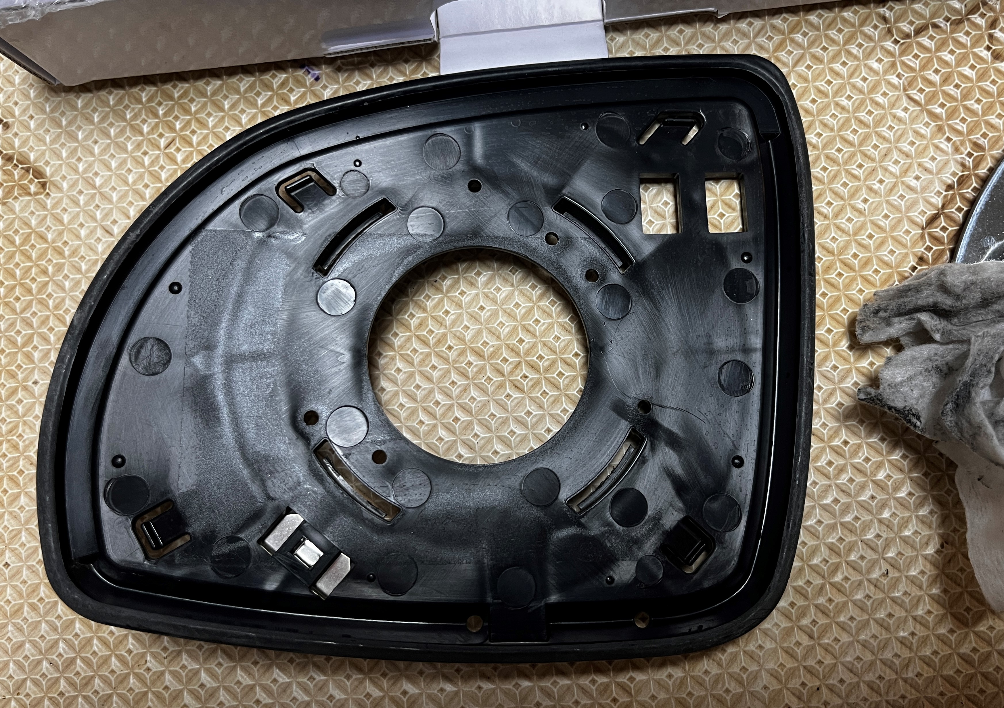 열선패드가 있는 제품이다 보니 먼저 열선패드를 사이드미러의 하우징에 대어봅니다.