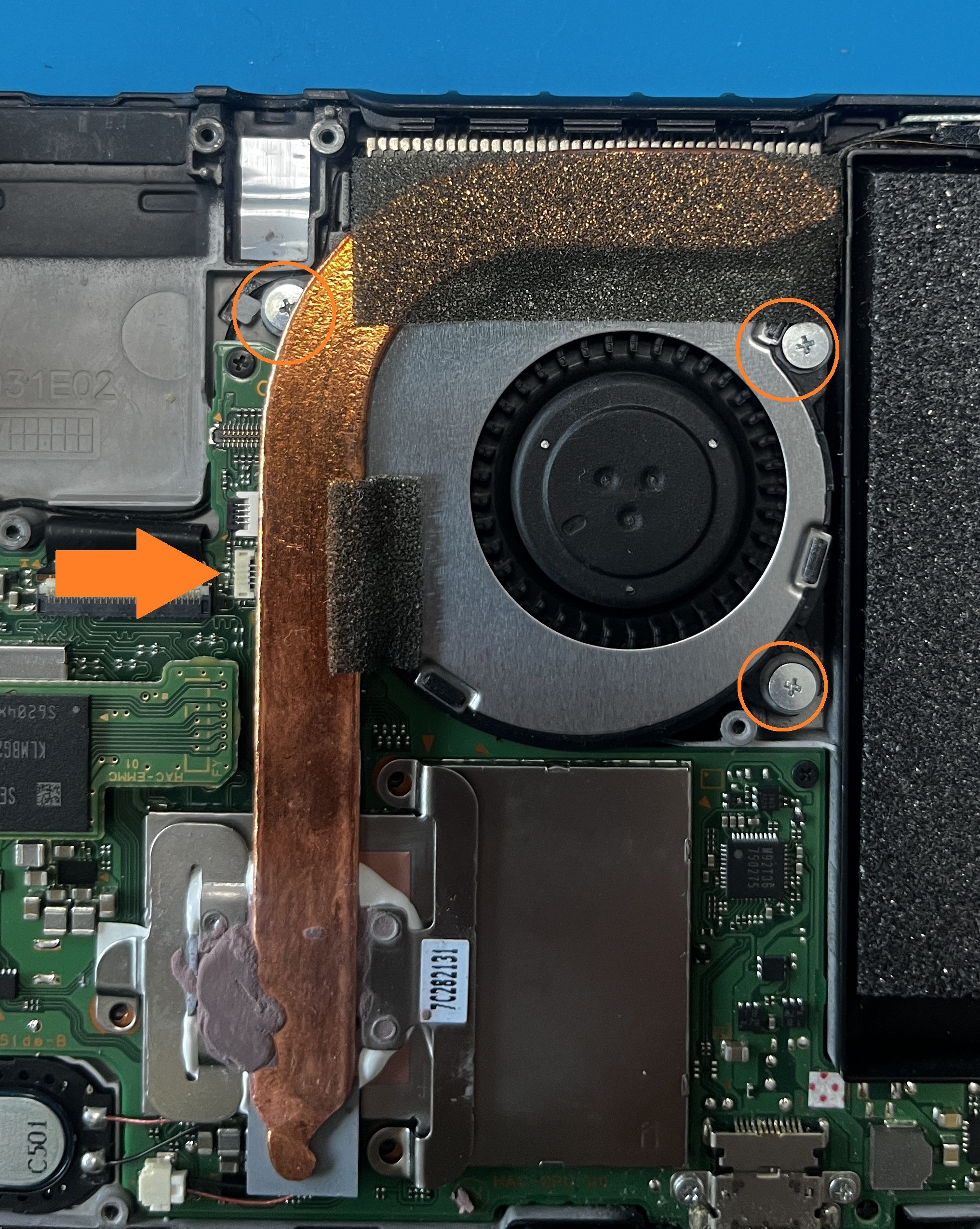 쿨러 탈거시 우측 사진의 화살표 부분에 전원을 공급하는 배선이 있습니다.
