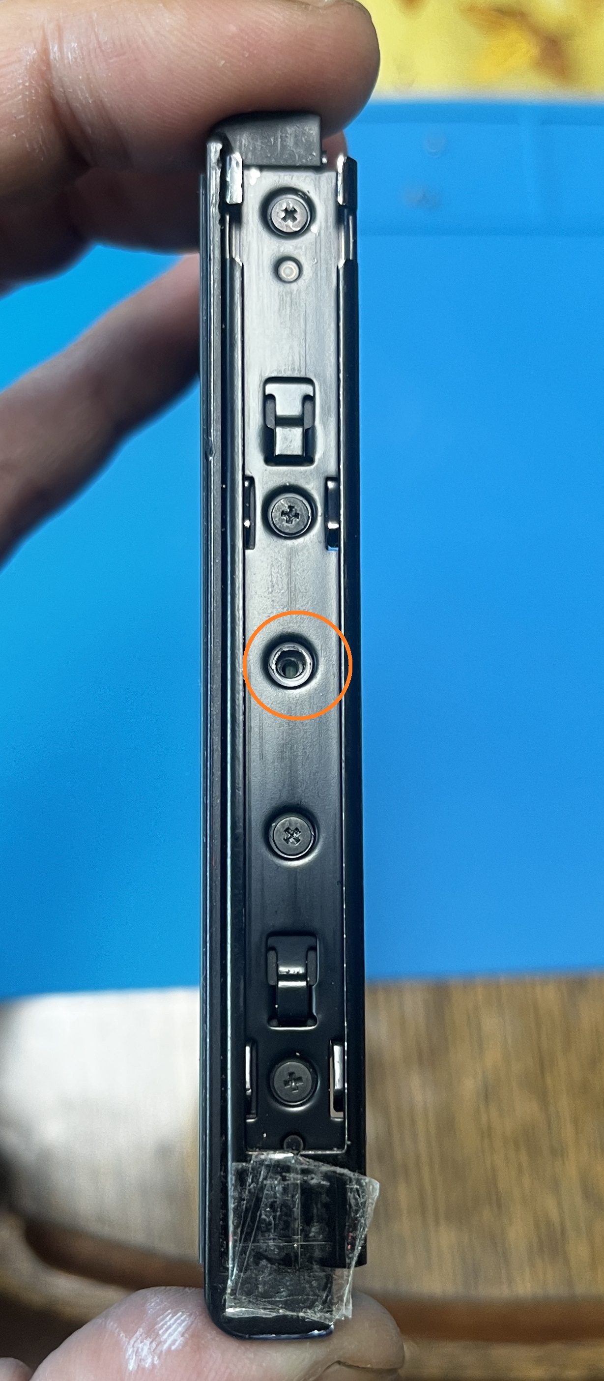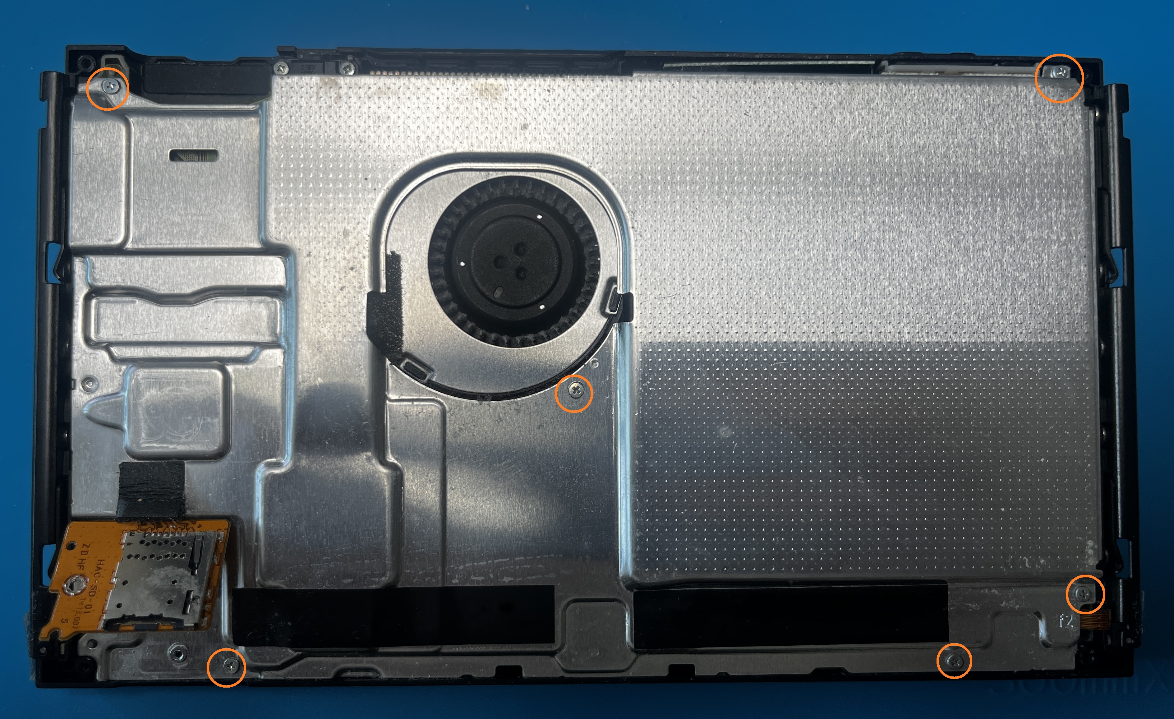 먼저 뒤판의 Y 나사 4개를 풀어준 후, SD카드 슬롯에서 SD 카드를 제거하고 십자 나사 하나를 풀어줍니다.