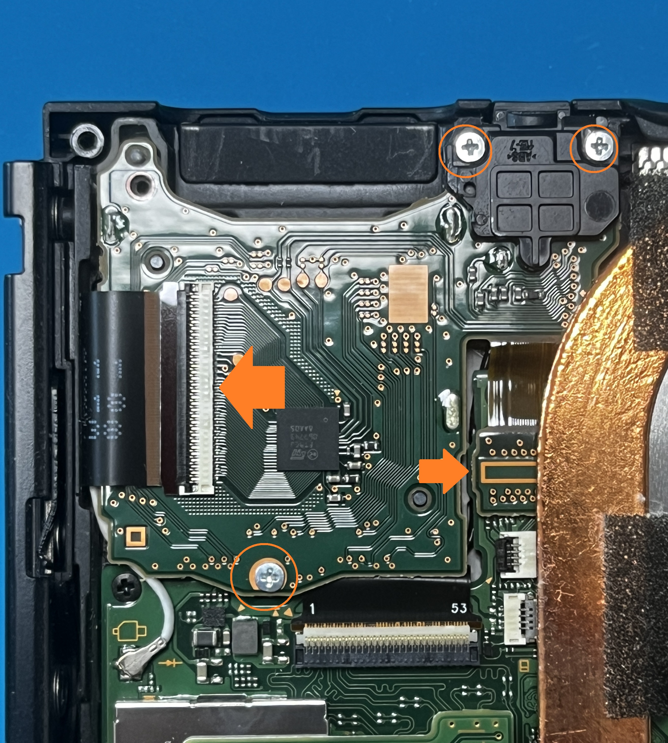 이후 SD카드 슬롯을 탈거해야 하는데 왼쪽 사진의 작은 십자 나사를 하나 풀어준 후 손으로 들어내면 쉽게 탈거됩니다.