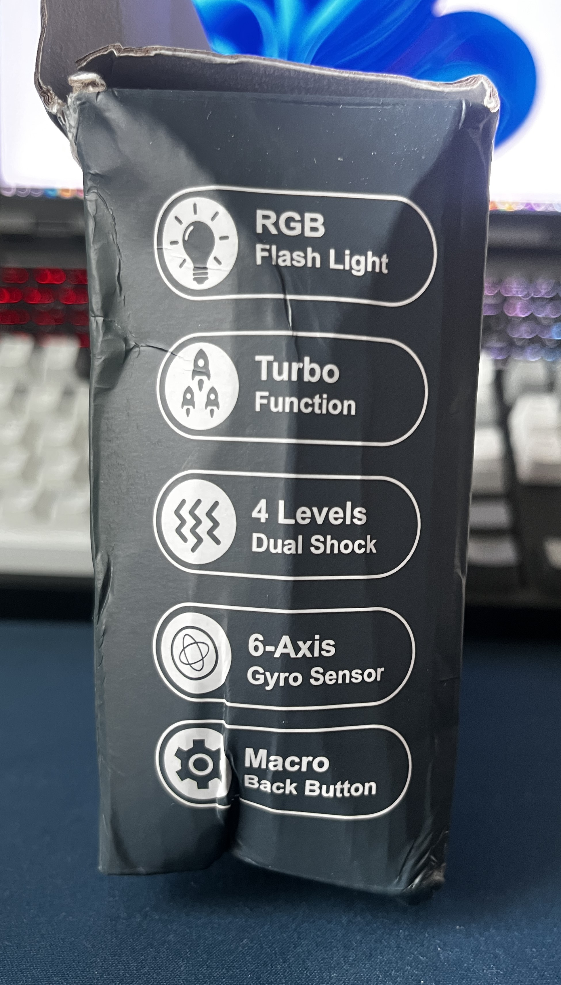 위 사진과 같이 후면에는 연결버튼과 진동 및 조명, 그리고 매크로 버튼이 존재합니다.