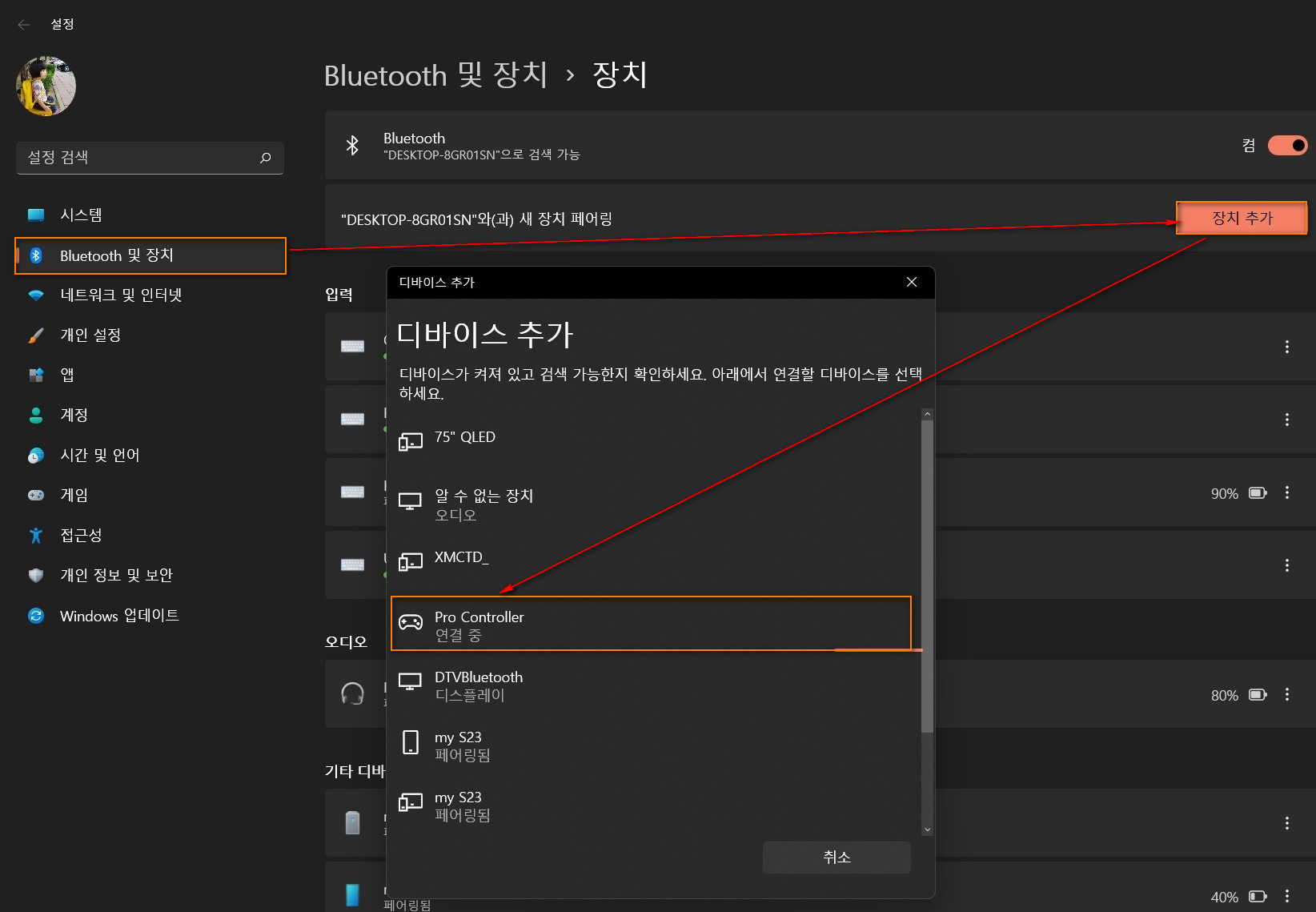 그런데... 블루투스로 PC와 연결하면 별도의 동글 없이도 PC에서도 프로콘으로 인식합니다.