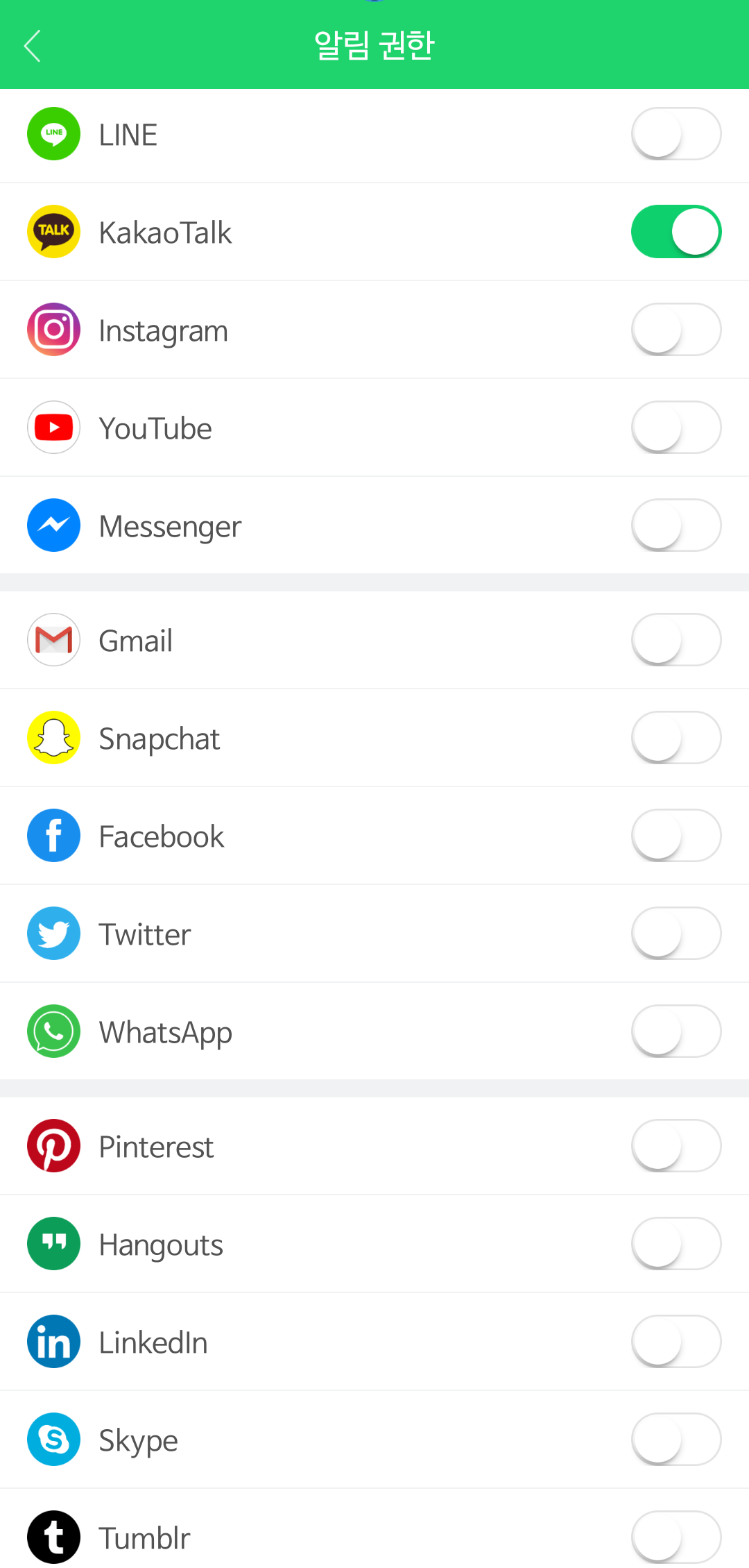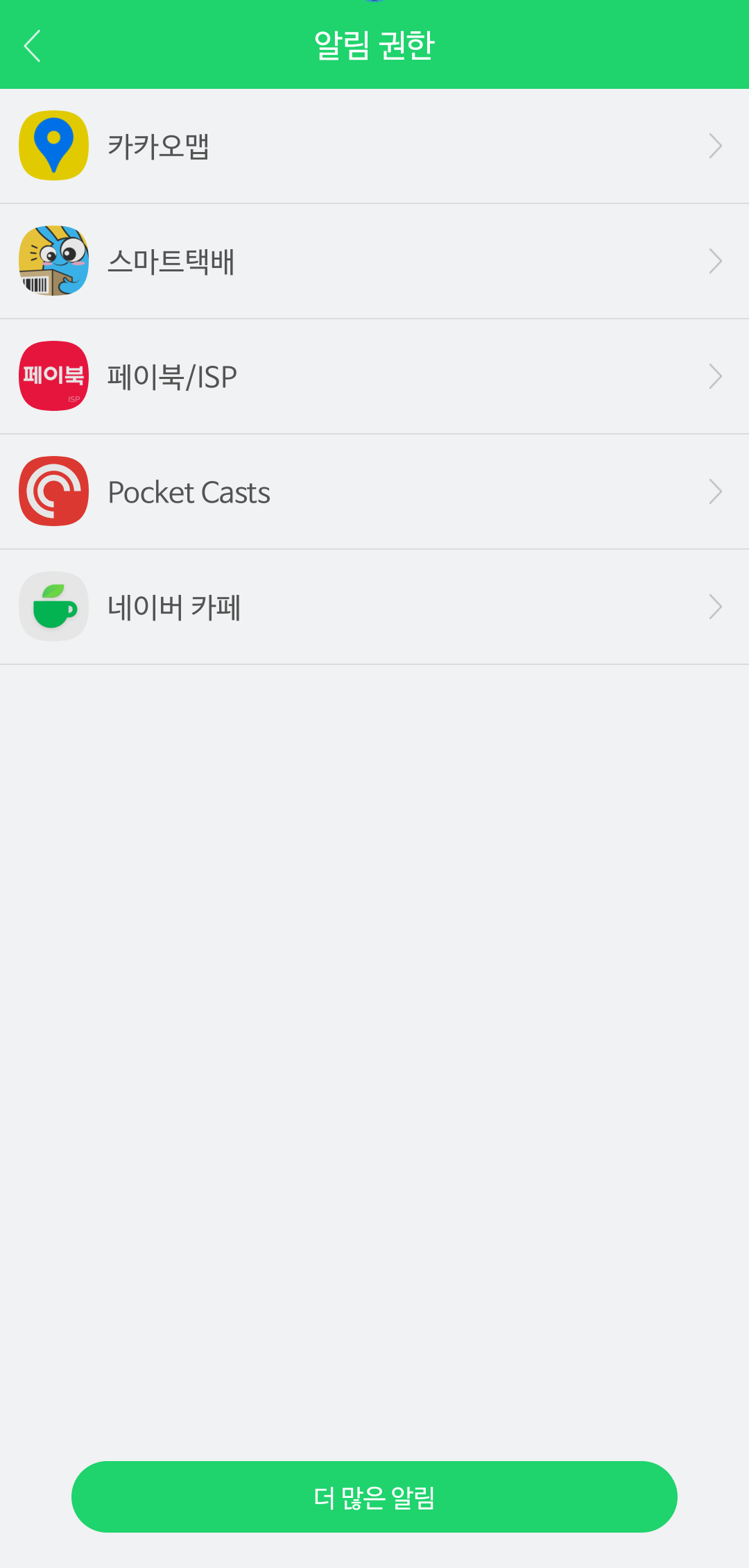 기본적으로 제공하는 알림을 지원하는 앱은 첫 번째 사진과 같습니다.