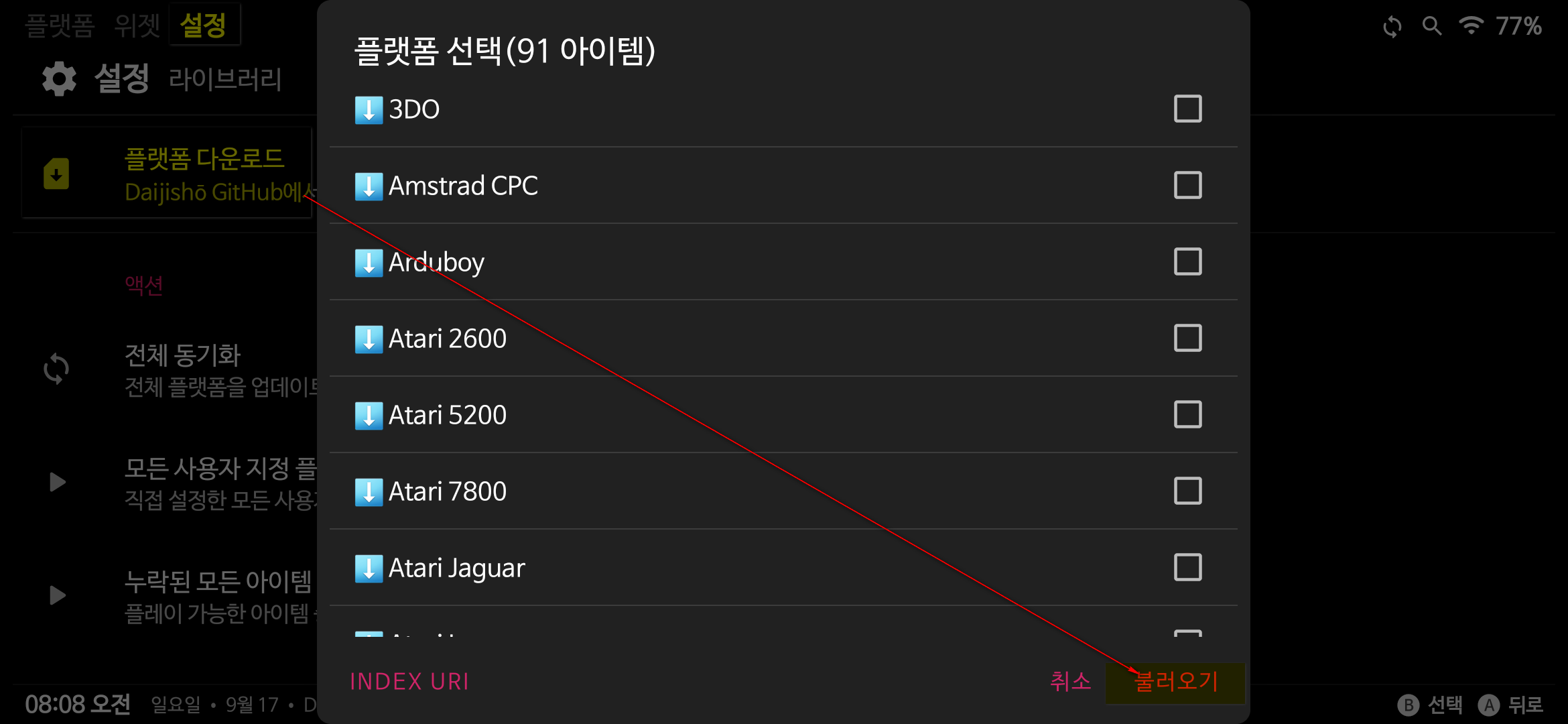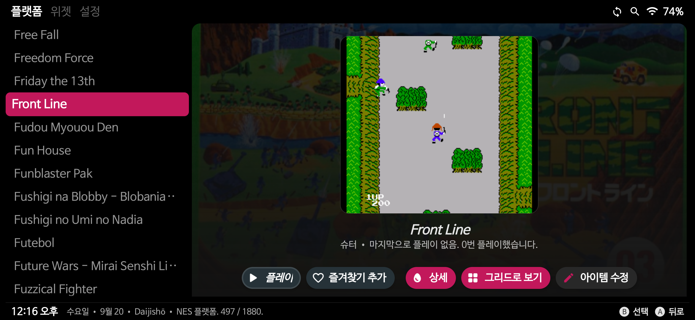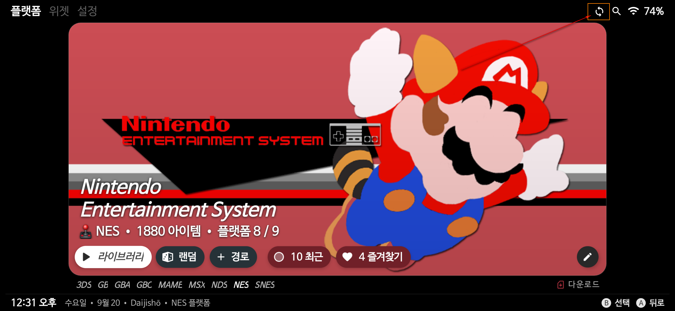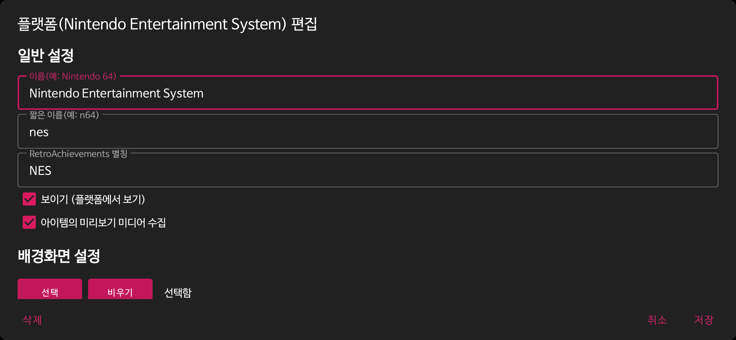 여기서 플랫폼은 구동하려는 고전게임기를 말합니다.