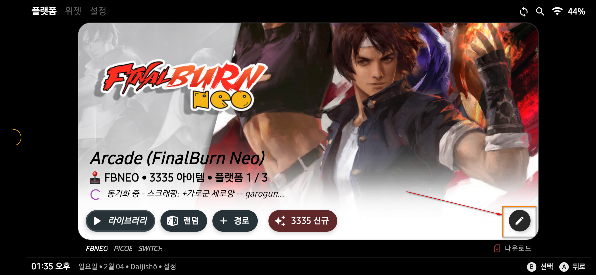 해당 플랫폼에 해당하는 롬파일이 들어가 있는 경로를 선택한 후 '완료' > '동기화'의 순으로 누르면 롬파일이 저장된 경로 내의 롬파일을 스캔하기 시작합니다.