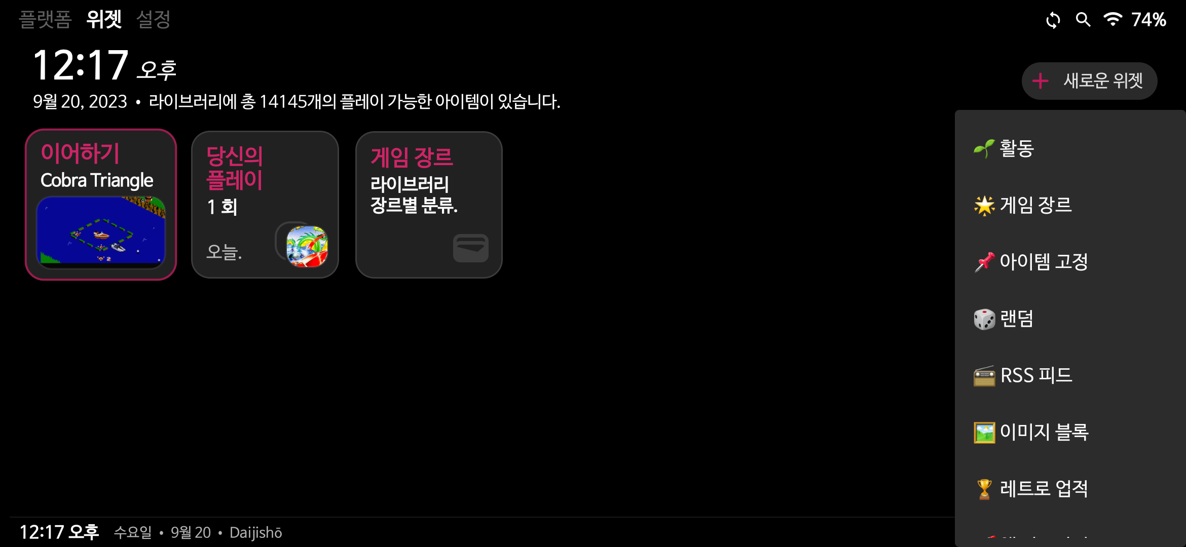 위젯 기능도 제공하여 위 갈무리처럼 최근실행한 게임이나 게임장르 등등으로 별도의 바로가기를 만들 수도 있습니다.