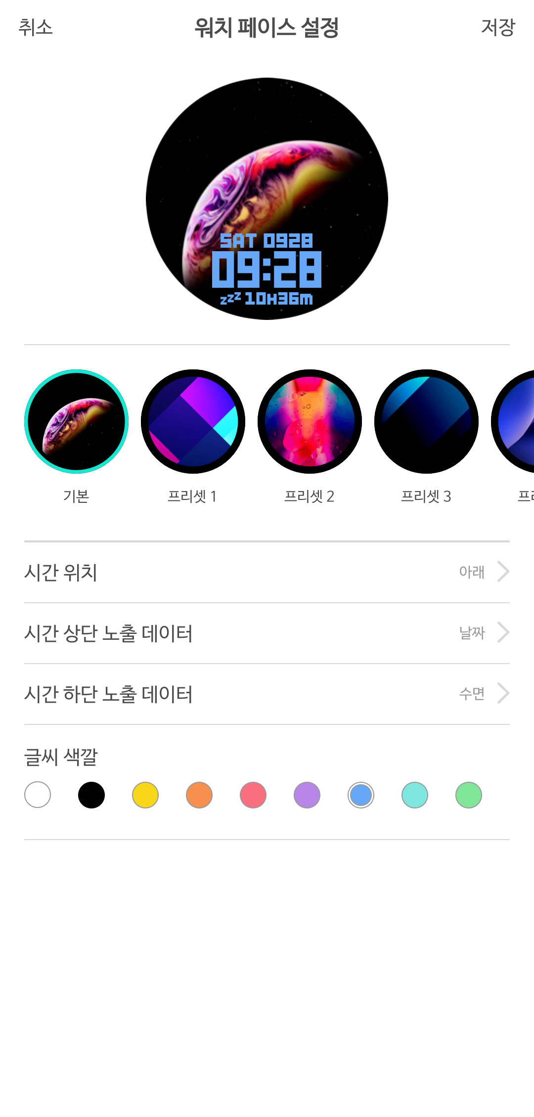 다른 여타의 스마트워치와 같이 다이얼 커스터마이징도 가능합니다.