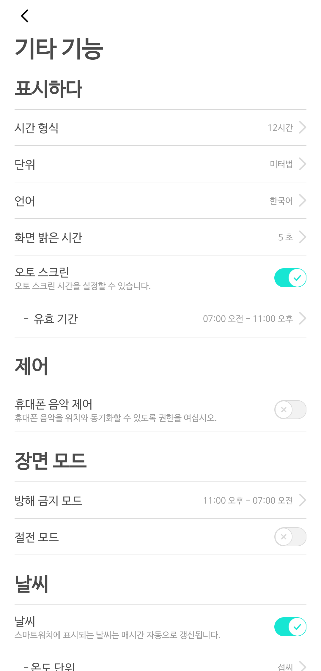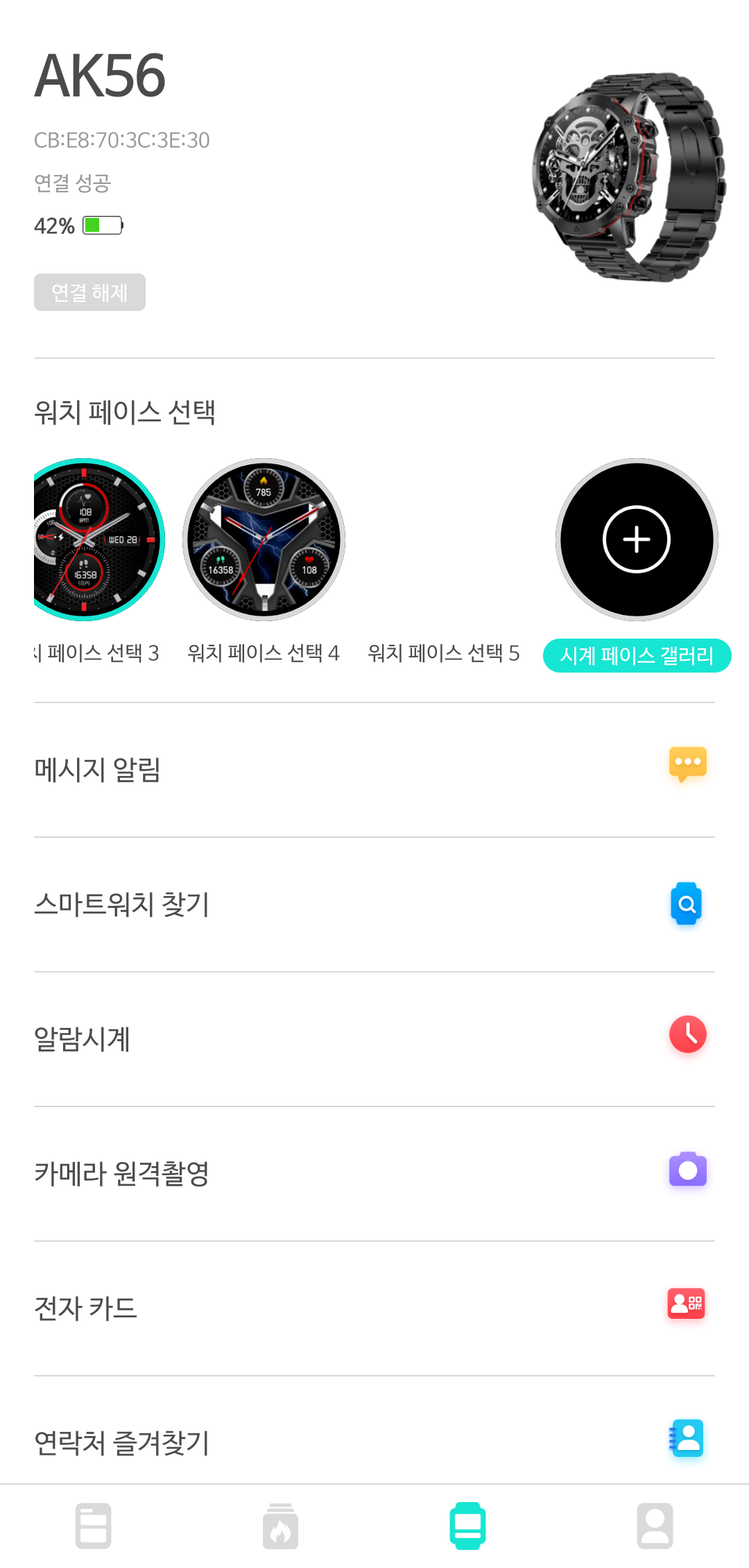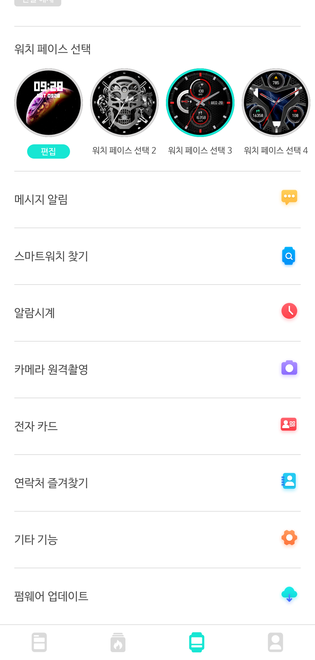 제일 중요한 기능 부분으로 들어가 보니 일반적인 스마트워치와 크게 다르지 않습니다.