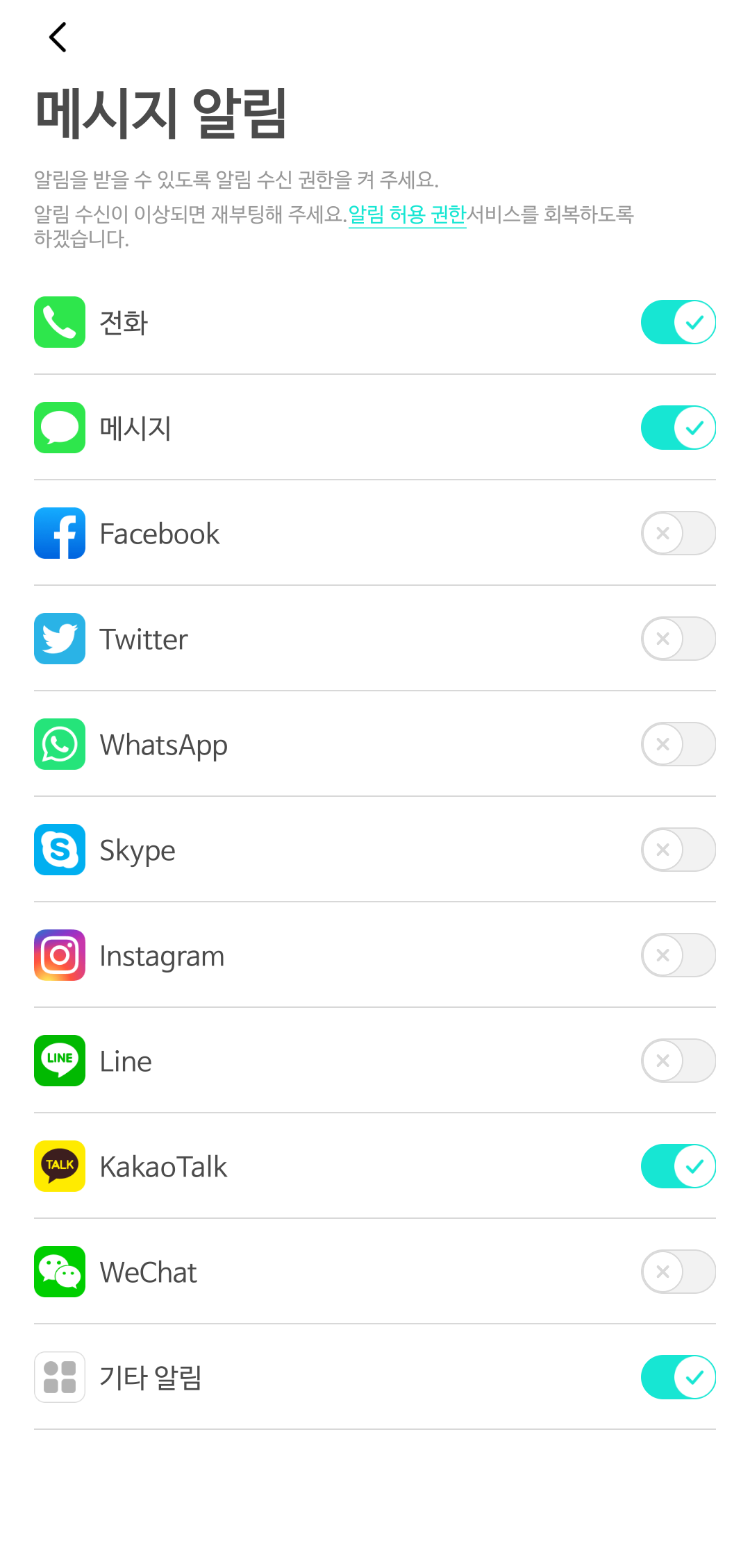 결국 기타 알림은 포기를 하던가 불편하게 사용하던가만 남습니다.
