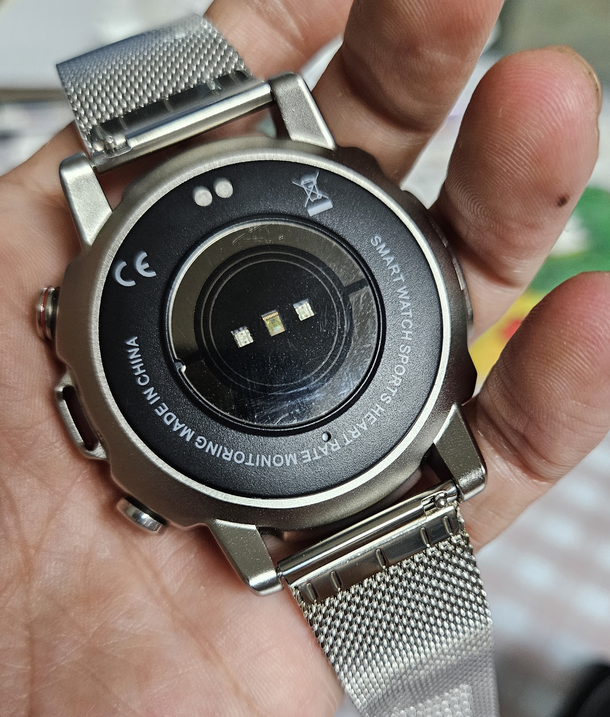 먼저 이 제품을 선택한 이유는 금속 밴드가 존재하고, 케이스가 원형이라 직사각형 모양보다 덜 불편할 것 같고, 후면의 센서들이 살짝 튀어나와 있어 팔목과 접촉하는 면이 최소화될 것 같았기 때문입니다.