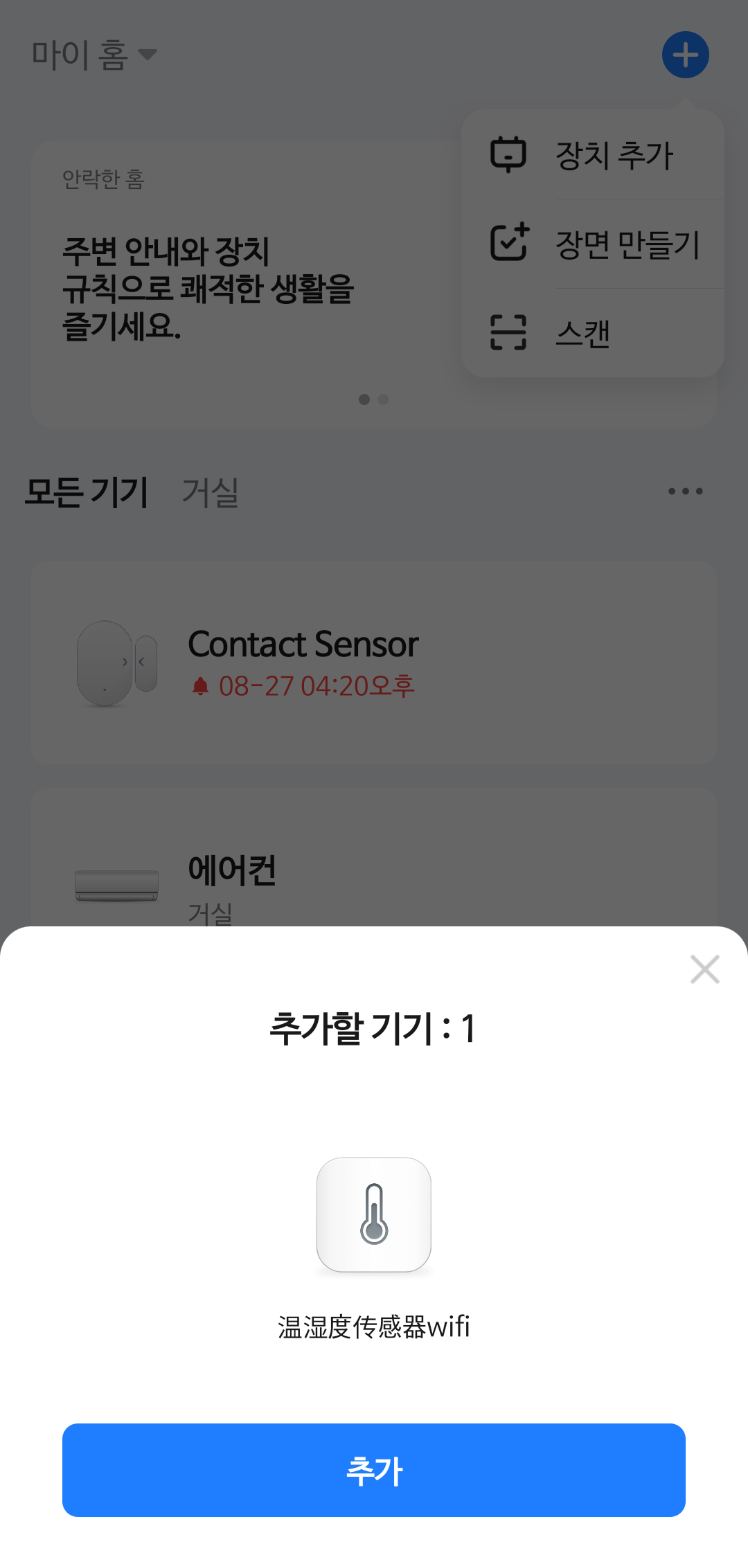 이 제품은 와이파이를 이용하는 제품이라 중간에 Wifi에 접속하는 과정을 거치면 장치가 추가됩니다.