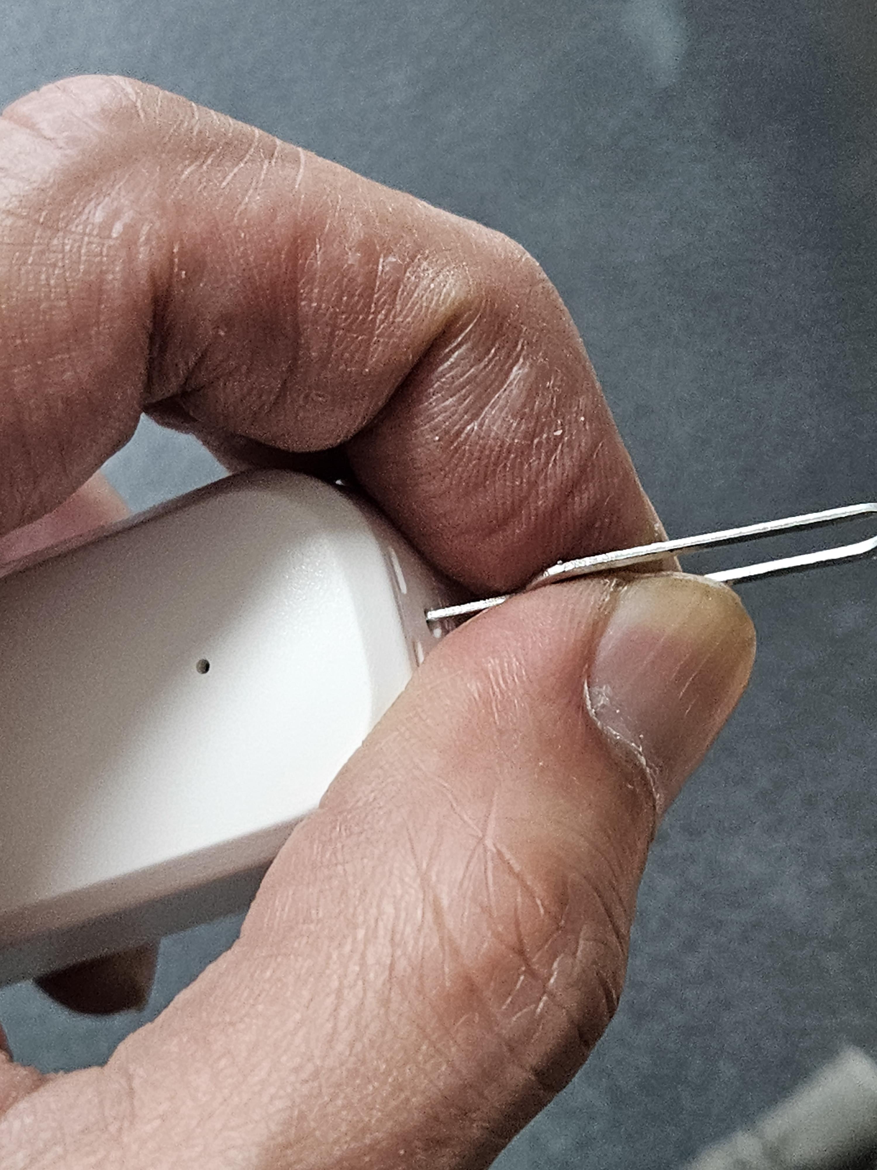 기기 본체의 페어링 버튼을 얇은 도구를 이용해 수초 간 눌러줍니다.