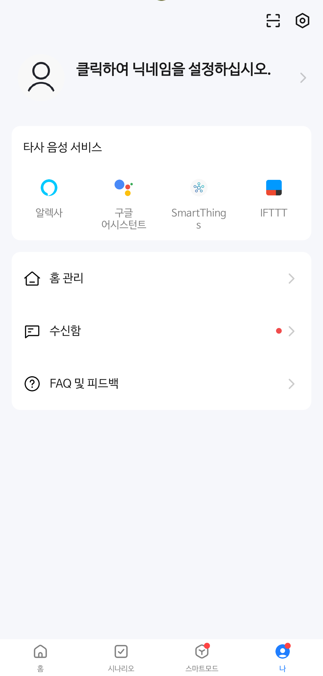 앱 하단의 '나' 탭으로 들어가 위의 '타사 음성 서비스'에서 구글 어시스턴트를 선택하면 우측 사진처럼 Google Home에서도 기기가 조회됩니다.