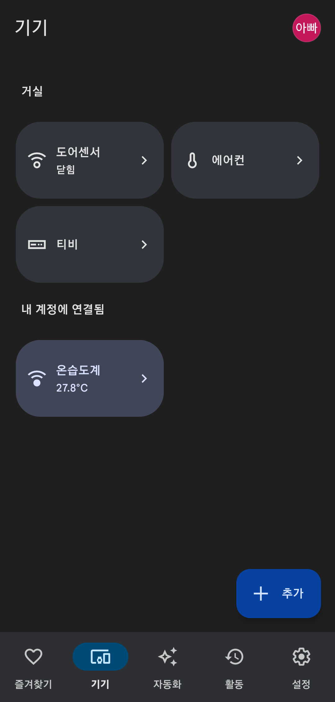 이제 스마트 라이프 앱에서 온도와 습도, 그리고 온습도 센서의 배터리 잔량을 확인할 수 있습니다.