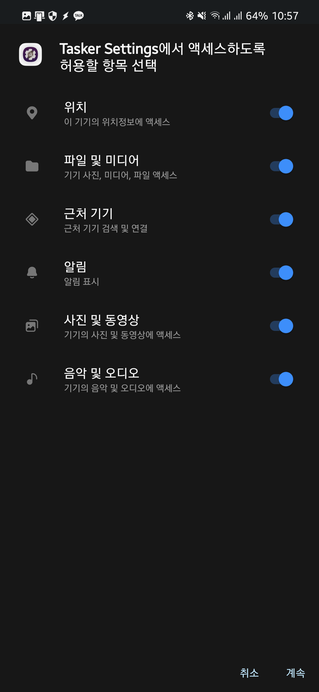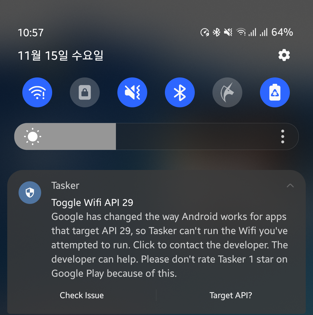 이럴 때 위의 깃허브를 방문하여 Tasker Settings 앱을 내려받아 설치해 주면 문제가 해결됩니다.