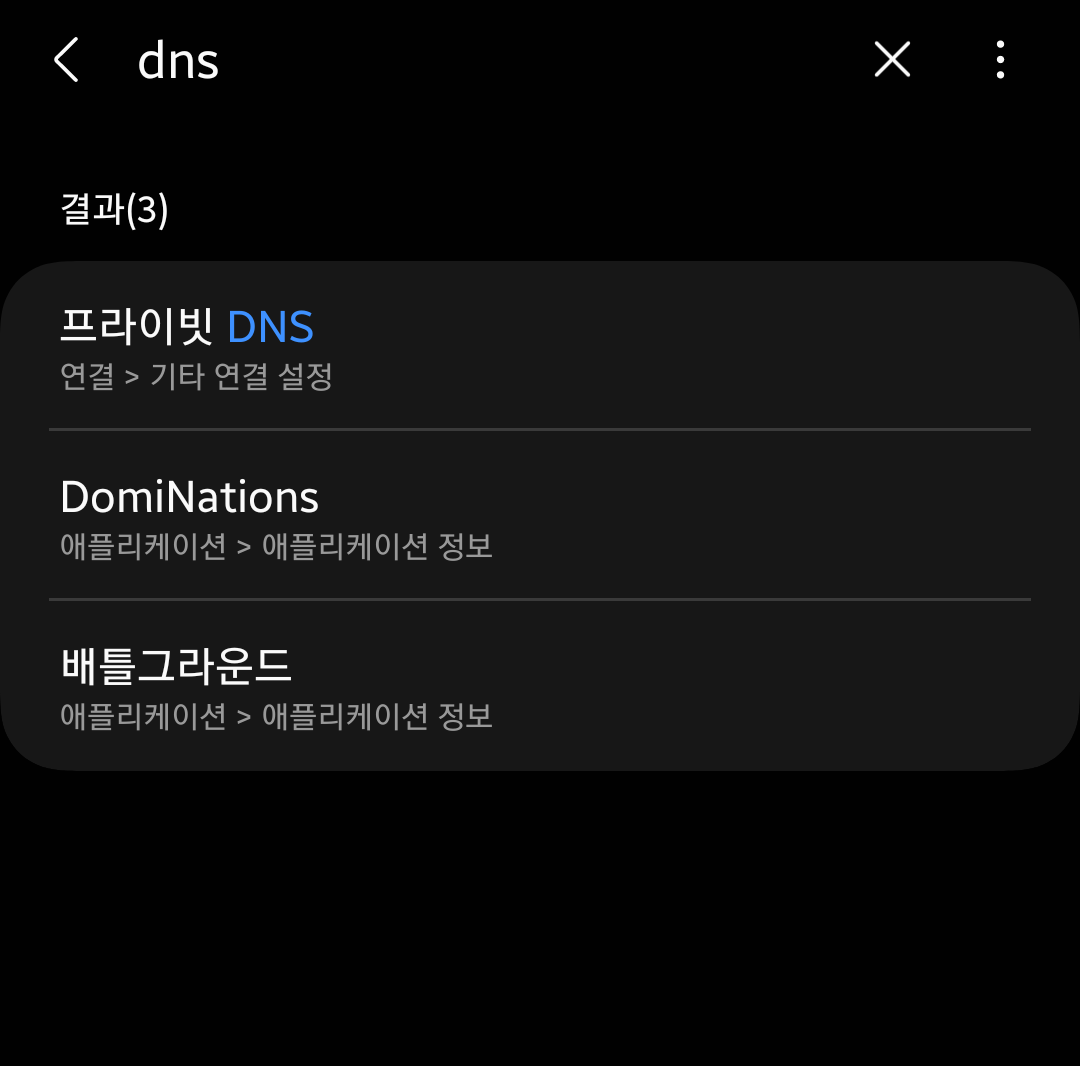 먼저 설정창에서 'dns'를 검색해 줍니다.