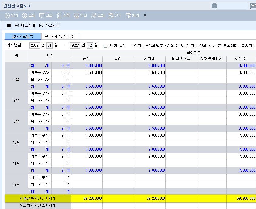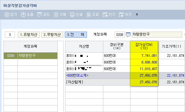 이후 원천신고자료를 회계처리 한 후 고정자산을 정리해 줍니다.