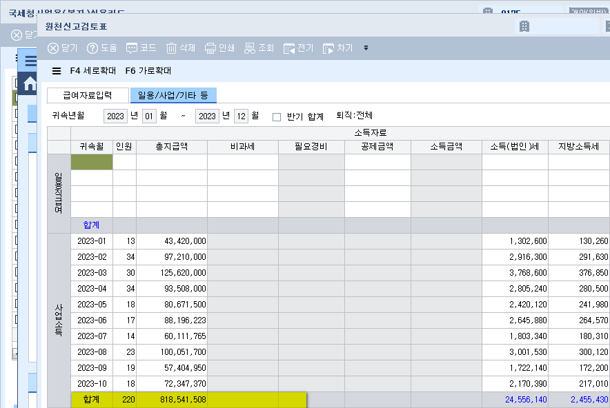 고정자산을 제외한 매입매출 금액 + 인건비 신고금액 + 감가상각비 + 재고, 이게 큰 비용의 대부분을 차지하고 있기 때문입니다.