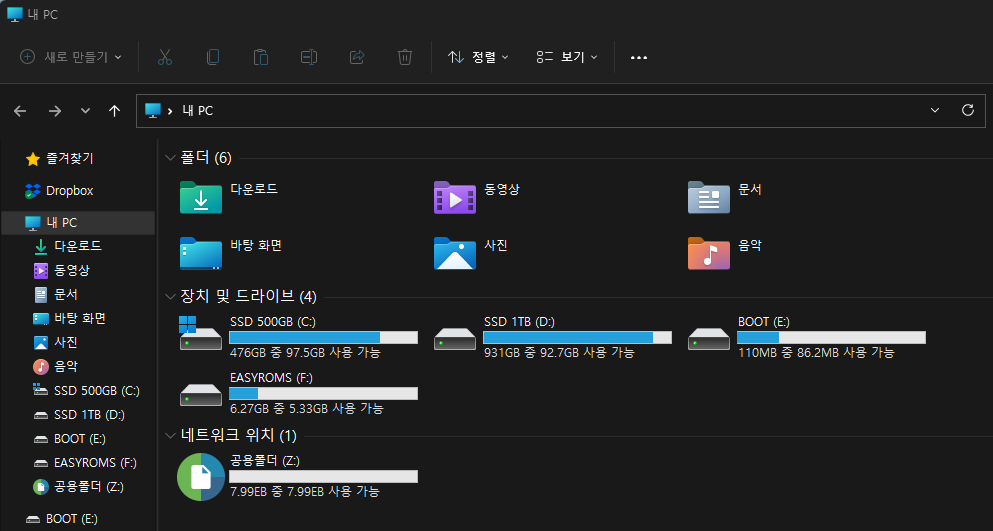 기기의 OS용 SD카드를 PC에 연결하면 위사진과 같이 'BOOT' 파티션과 롬파일이 들어 있는 'EASYROMS' 파티션이 있습니다.