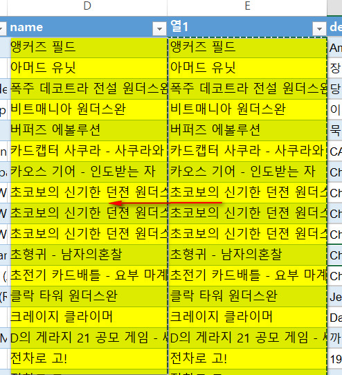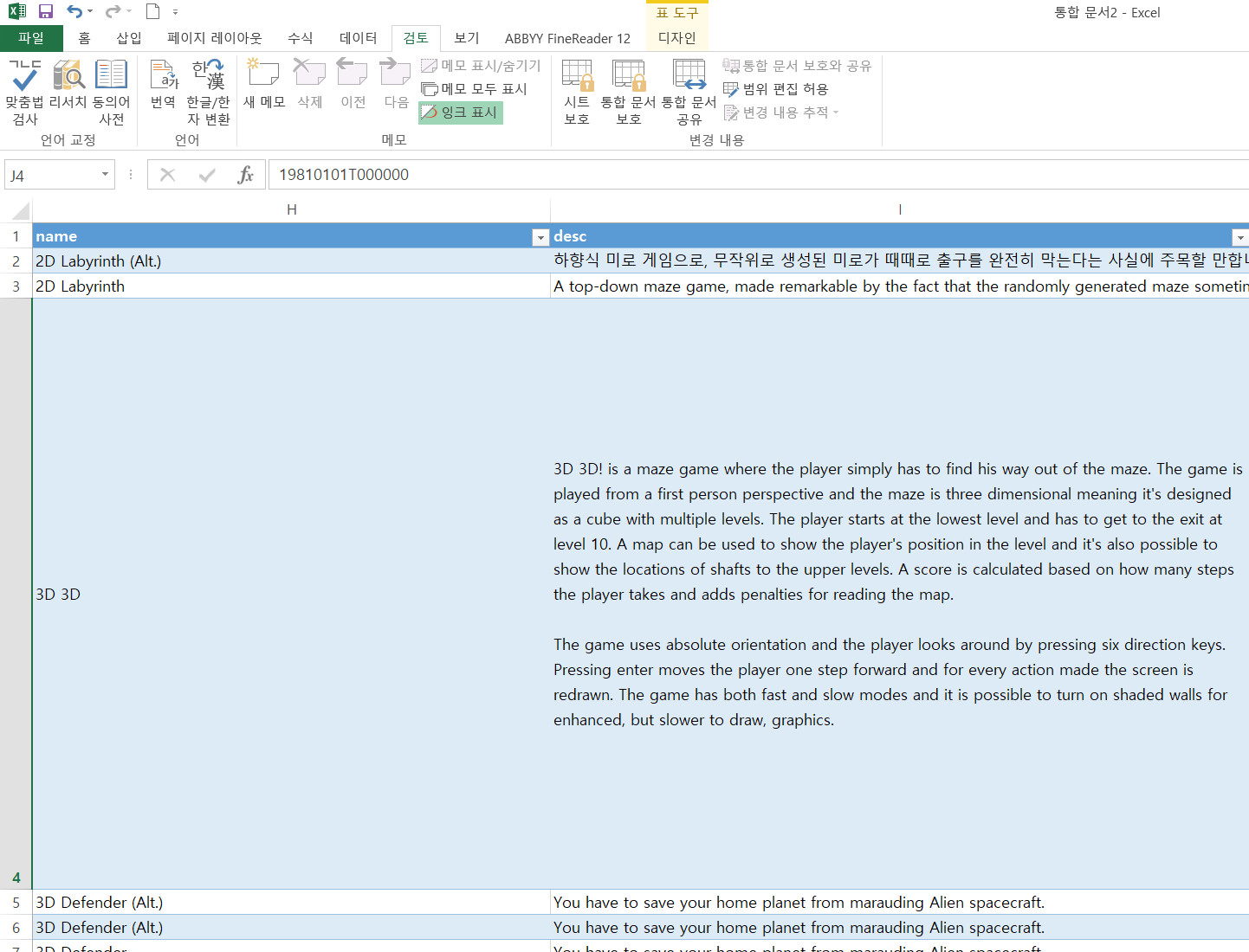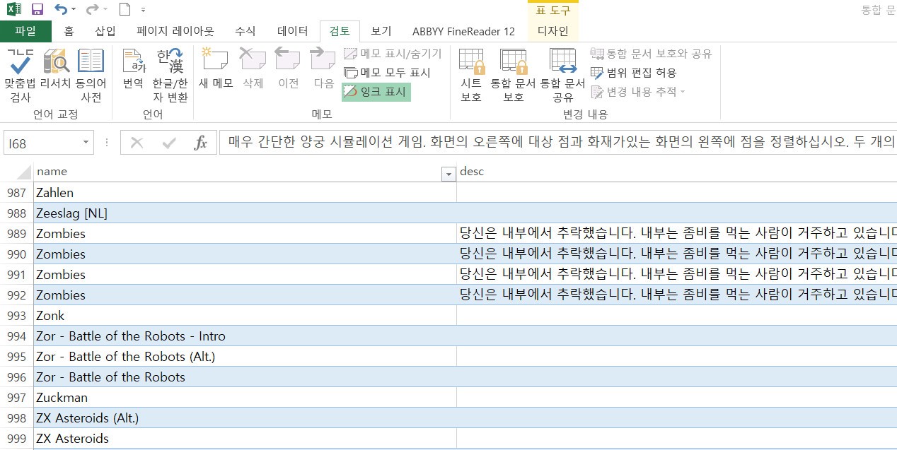 번역된 한글 설명을 복사하여 원래의 엑셀 파일에 다시 붙여줍니다.