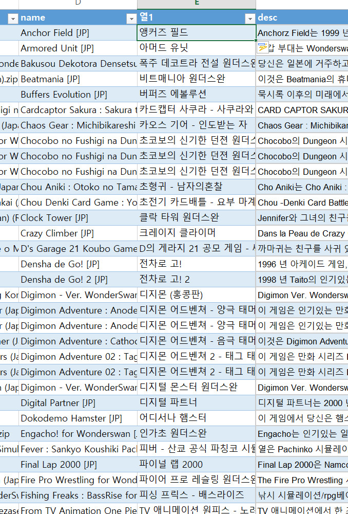 gamelist.xml 파일은 엑셀로도 편집이 가능합니다.