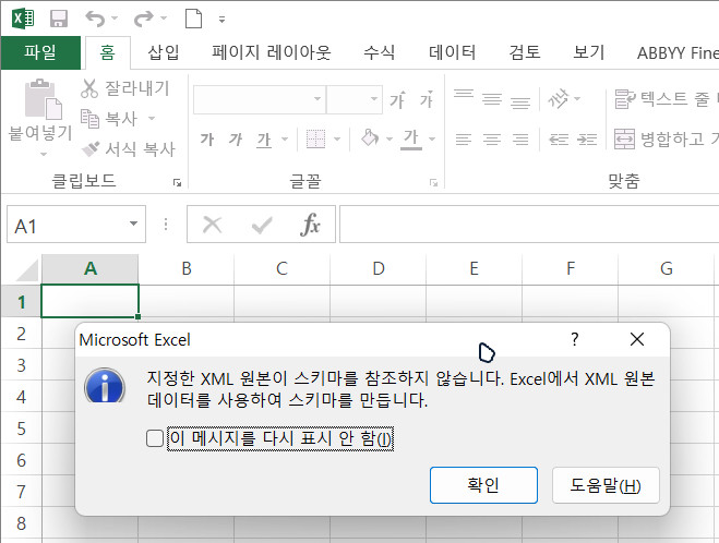 Excel에서 xml 파일을 불러온 후 열리는 팝업창에서 'XML 표로'를 선택합니다.