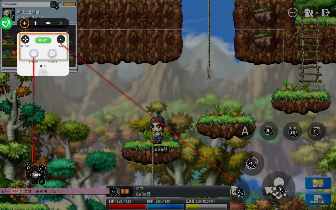 PC 메이플랜드에서의 조이스틱 사용법은 위의 글을 참고하시기 바랍니다.