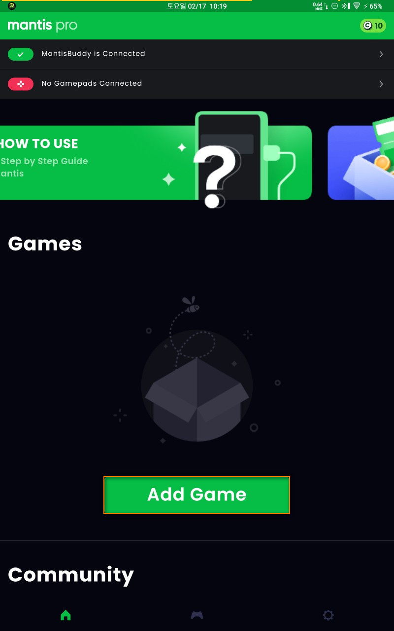 10개가 넘어가면 유료로 결제를 해야 하기 때문에 맨티스에서 'LAUNCH GAME'을 누르지 않고, 그냥 안드로이드 홈런처에서 앱을 실행해 주면 코인소모 없이 모든 기능이 동일하게 동작합니다.