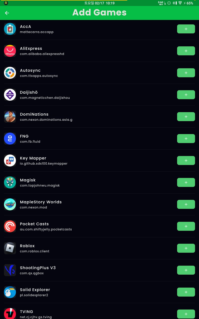 다시 맨티스 앱으로 돌아가 맨티스가 게임으로 인식할 앱의 추가를 위해 'Add Game'를 눌러 나오는 앱 목록에서 원하는 게임 우측의 + 아이콘을 눌러 앱을 게임 목록에 추가해 줍니다.
