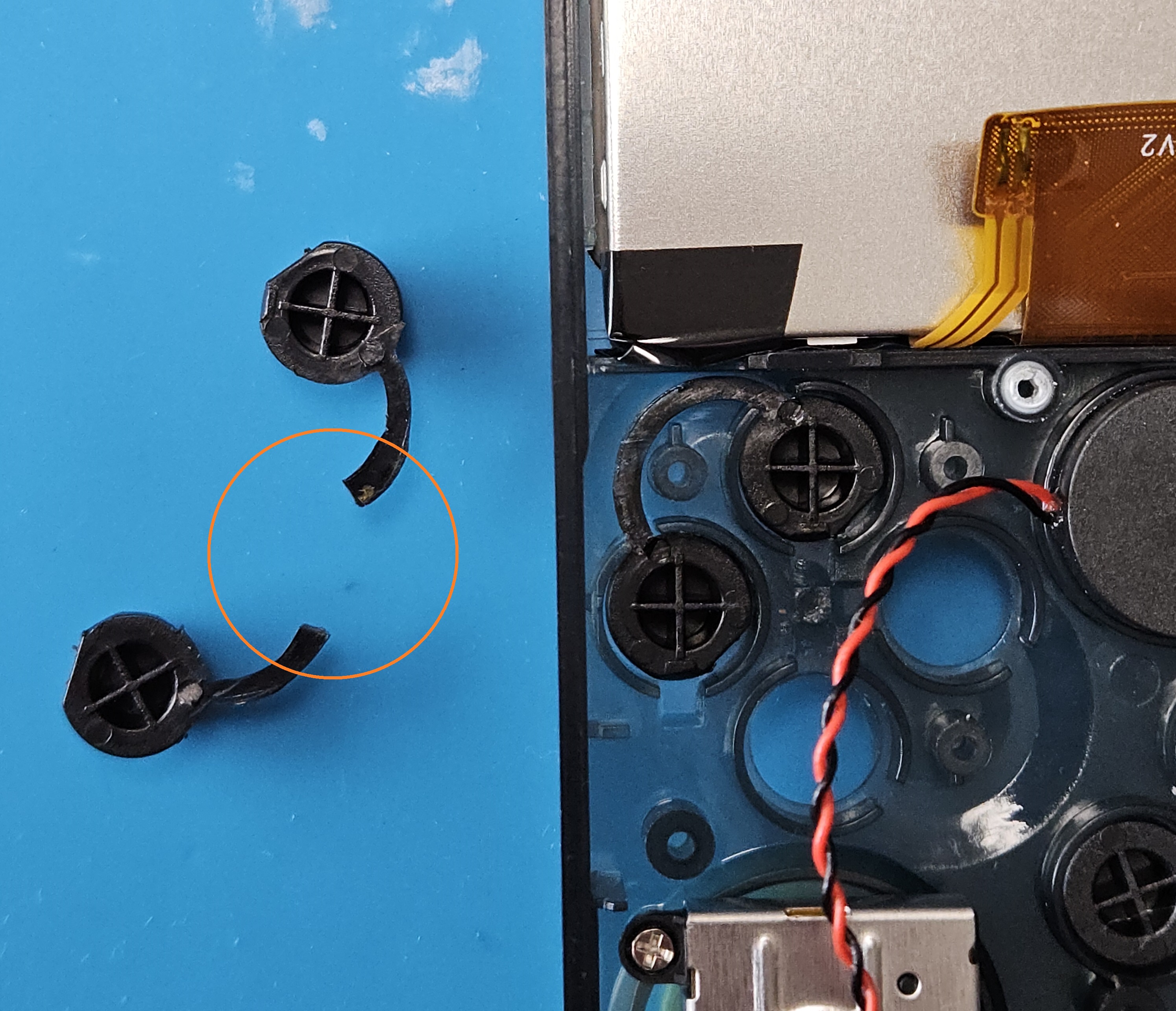 액정과 스피커, 아날로그 스틱에 연결되는 커넥터는 커넥터의 검은색 부분을 들어 올리면 탈거가 가능합니다.