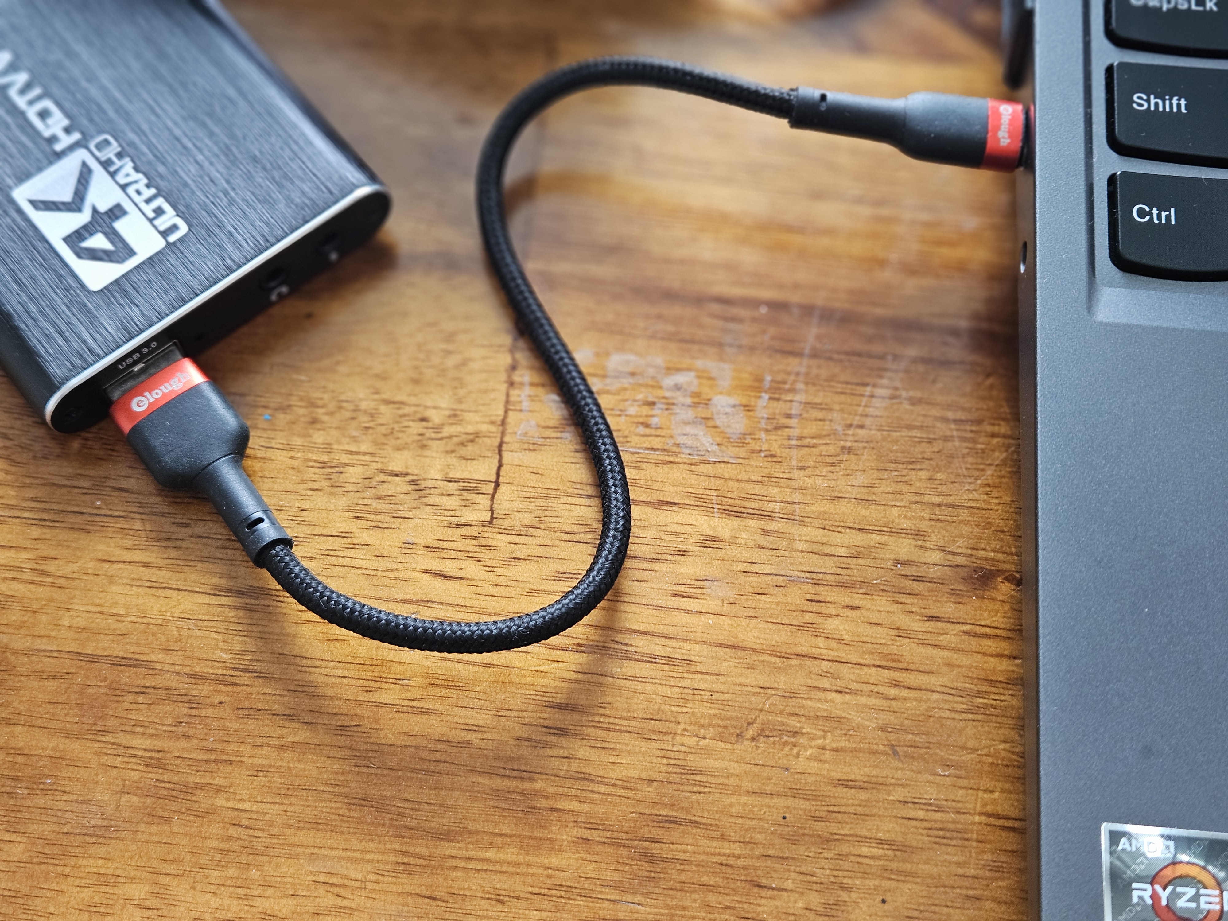 이후 캡처 카드와 PC를 연결해 주면 되는데 위 사진처럼 다른 케이블을 연결할 경우 PC에서 인식이 안 되는 경우가 있으니 동봉된 파란색 케이블을 사용하는 것이 좋습니다.