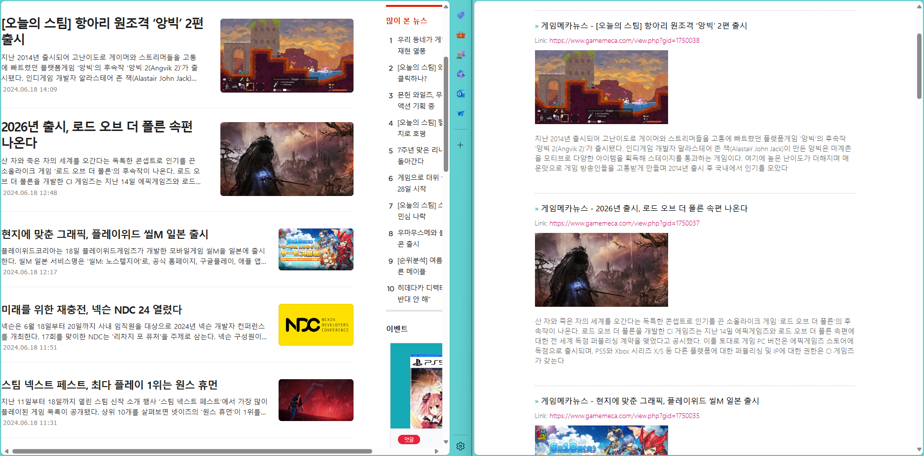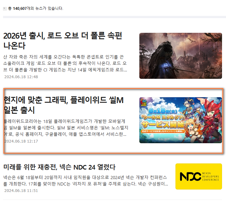 예제로 위 게임메카의 게임뉴스를 가지고 RSS를 생성해 보겠습니다.